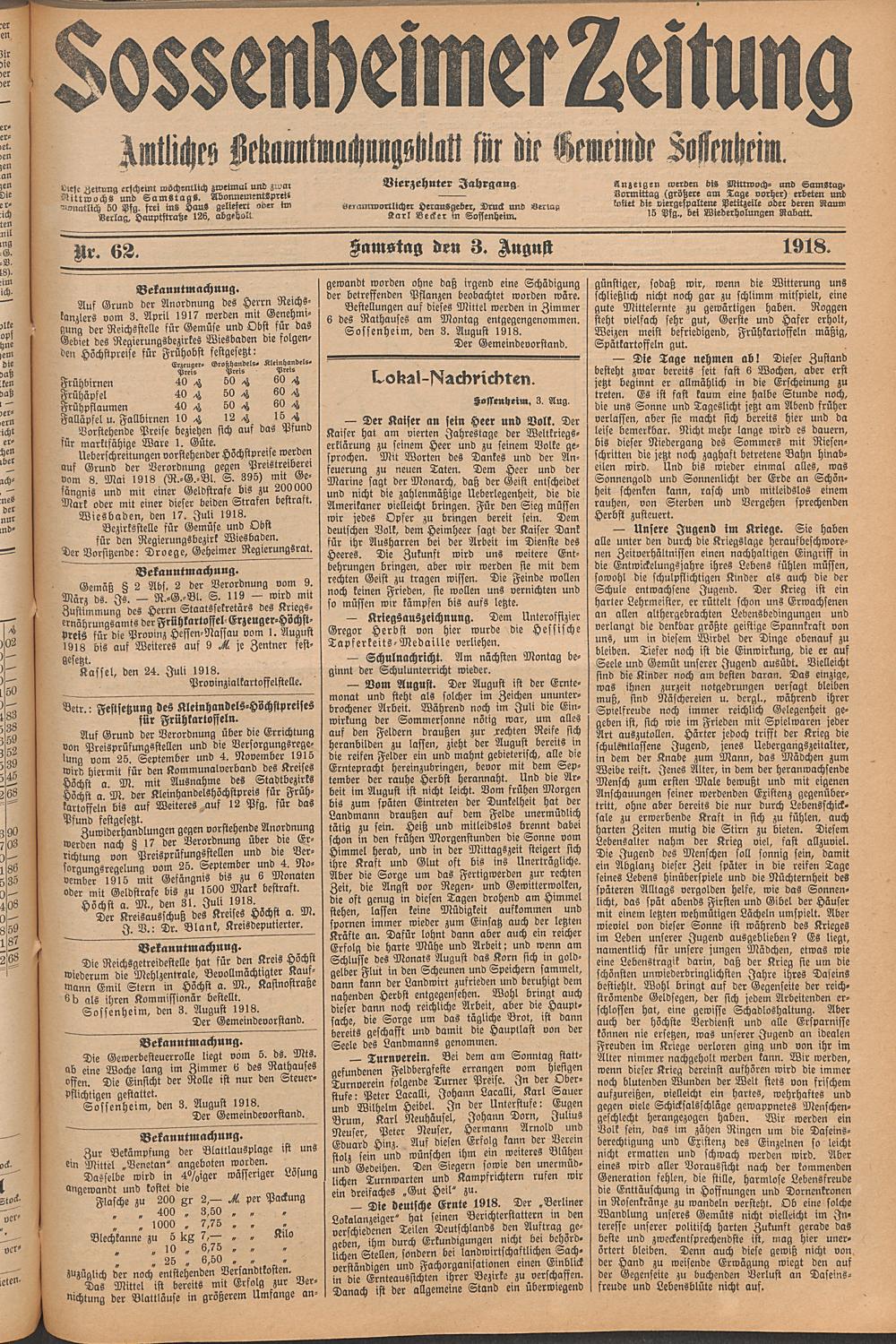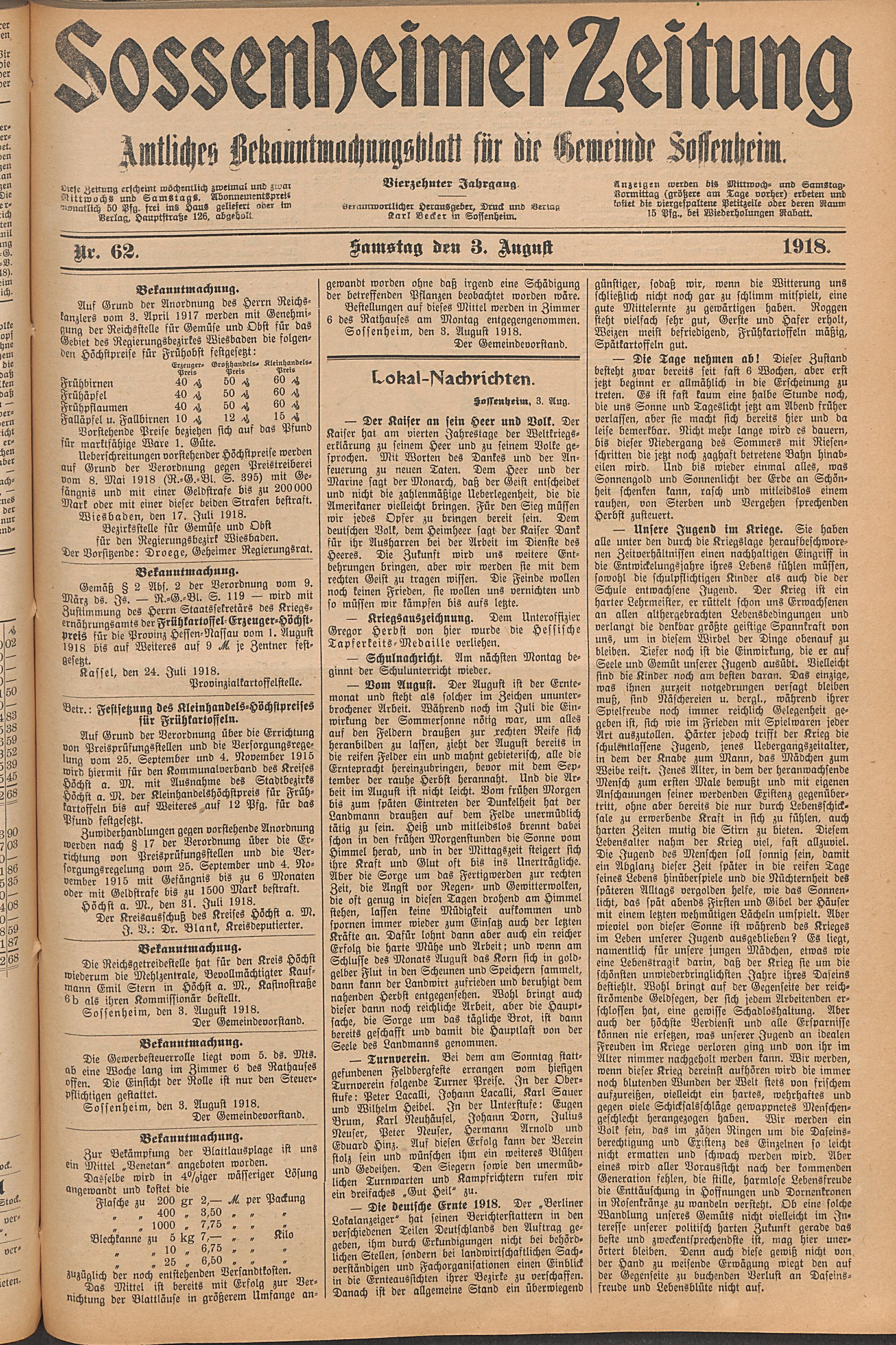 Regionale Zeitungen aus der Zeit des Ersten Weltkrieges
