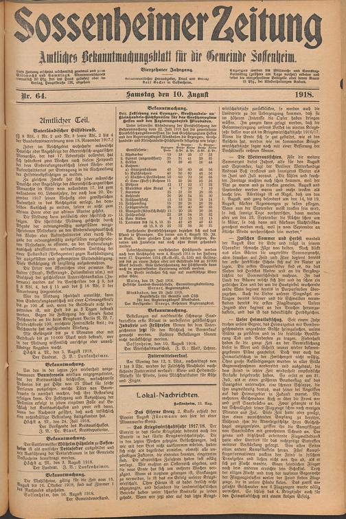 Regionale Zeitungen aus der Zeit des Ersten Weltkrieges