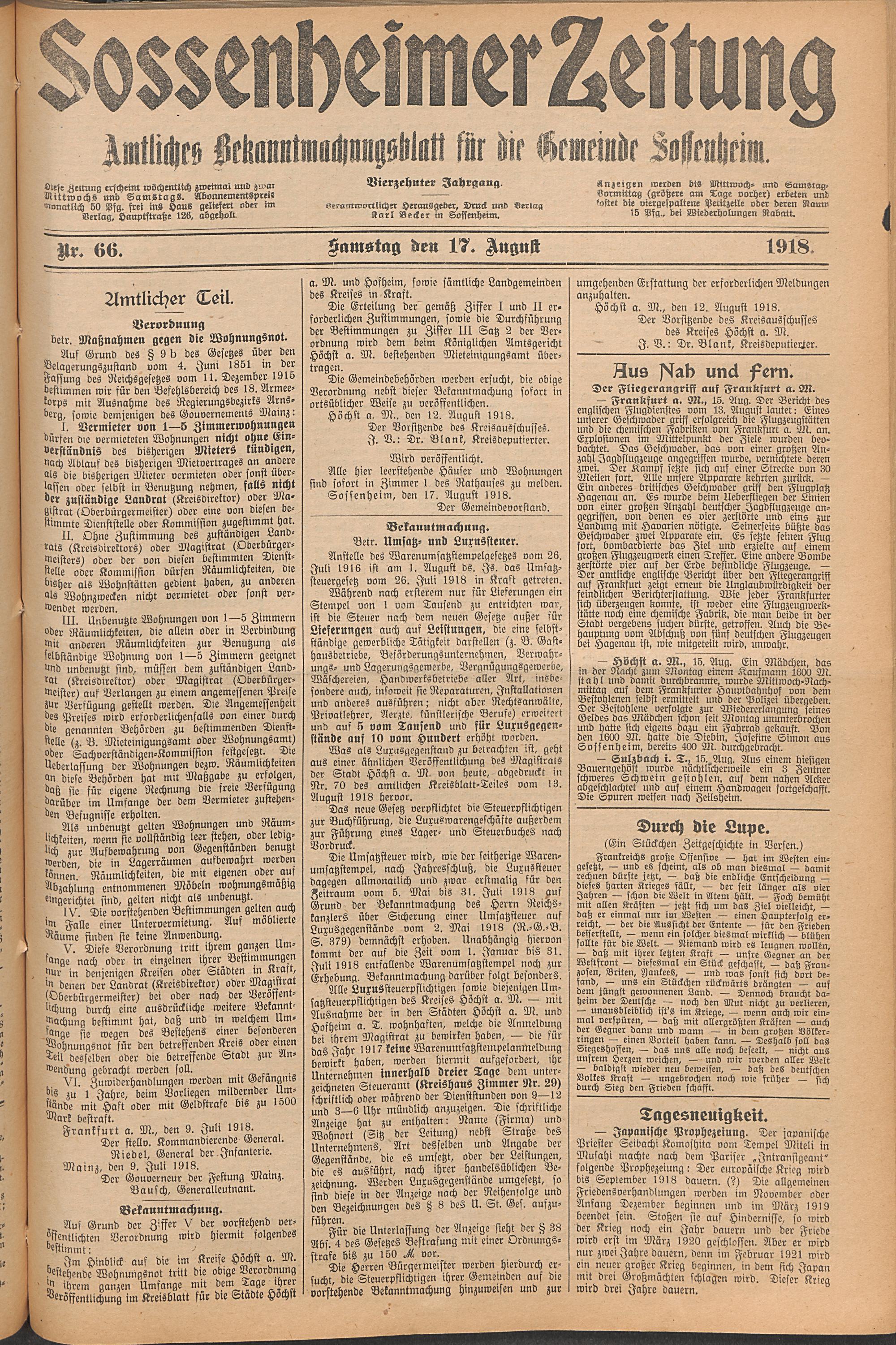 Sossenheimer Zeitung. 1906-1927