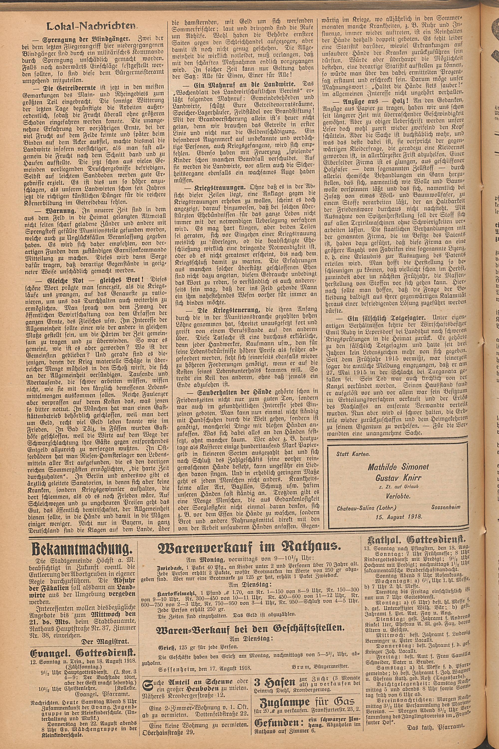 Regionale Zeitungen aus der Zeit des Ersten Weltkrieges