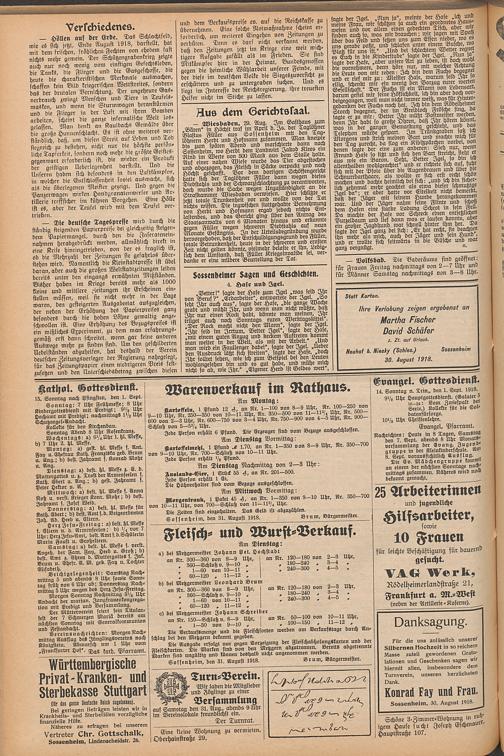 Regionale Zeitungen aus der Zeit des Ersten Weltkrieges