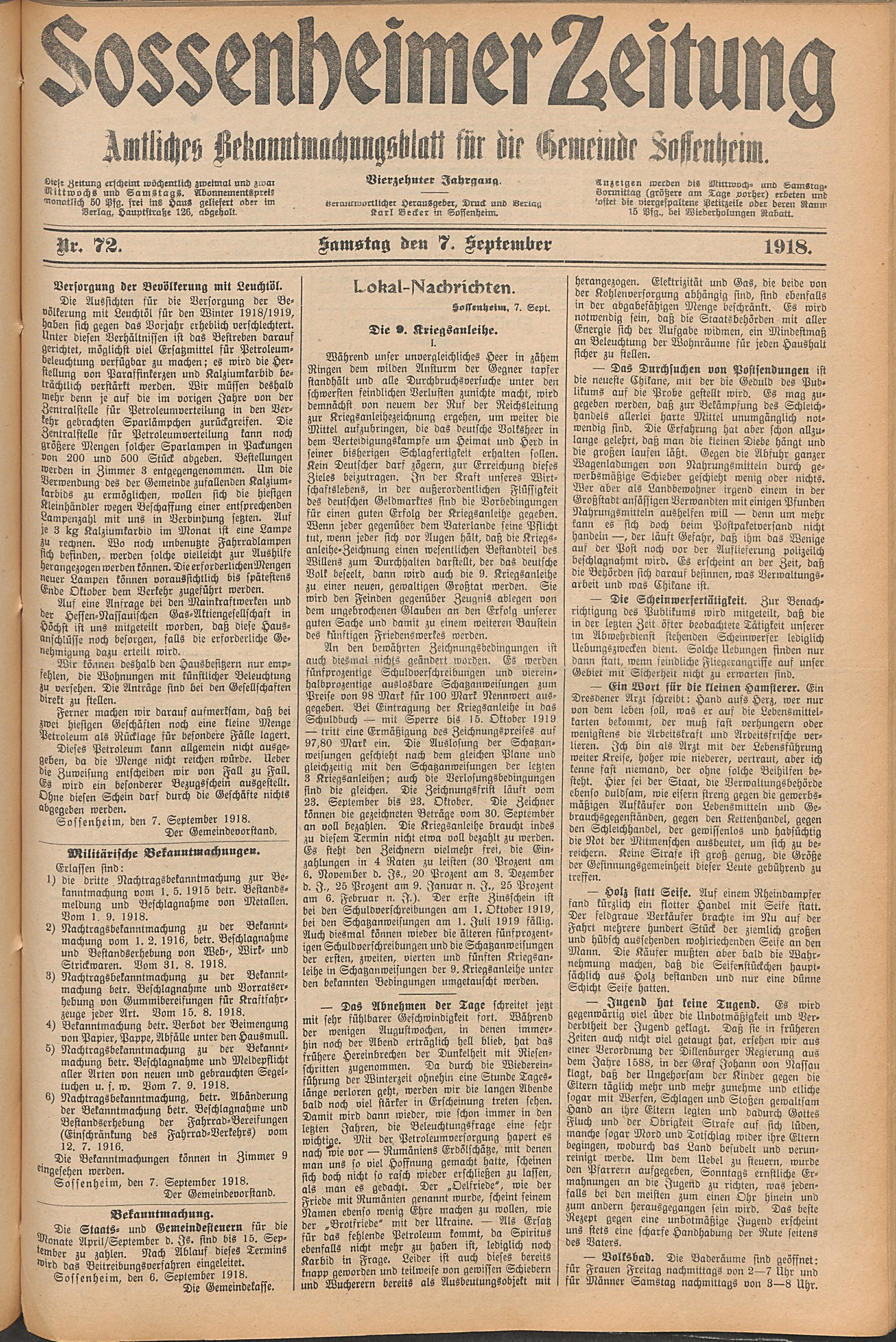 Sossenheimer Zeitung. 1906-1927