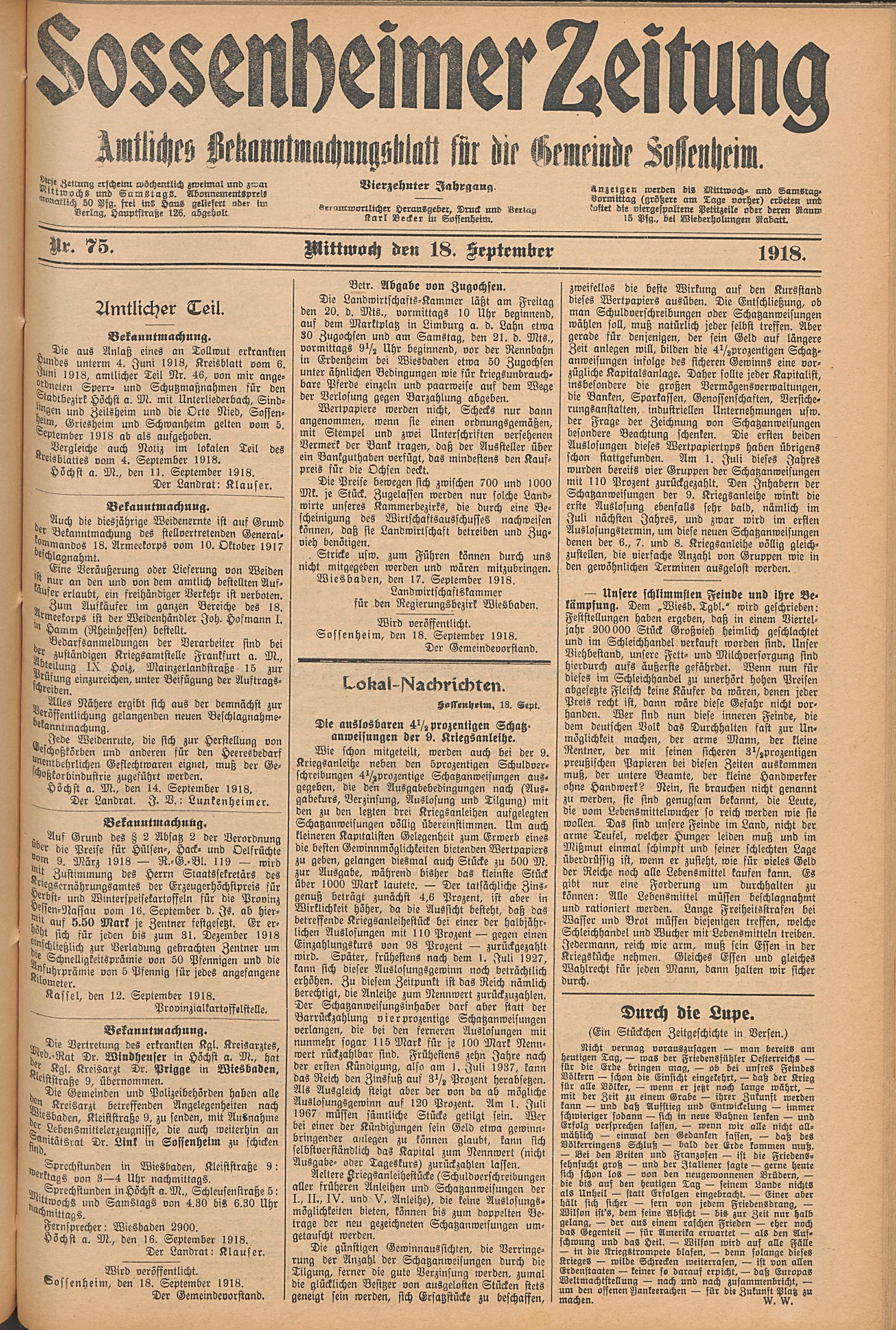 Regionale Zeitungen aus der Zeit des Ersten Weltkrieges