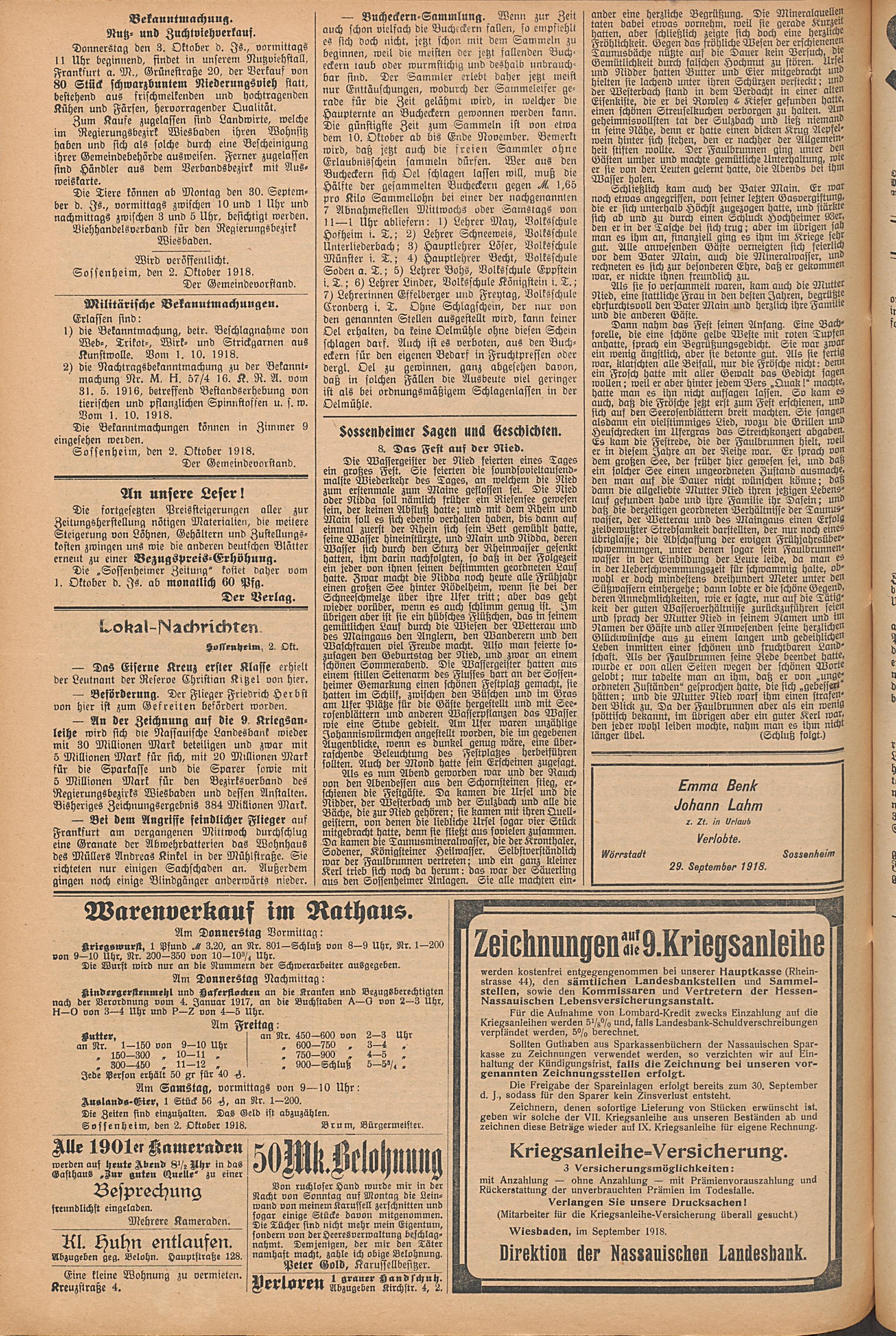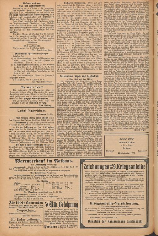 Regionale Zeitungen aus der Zeit des Ersten Weltkrieges
