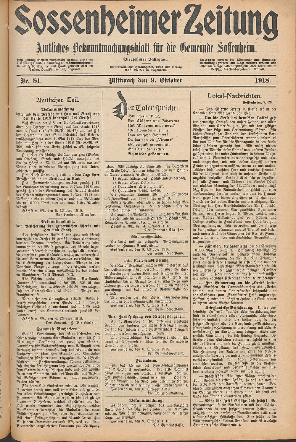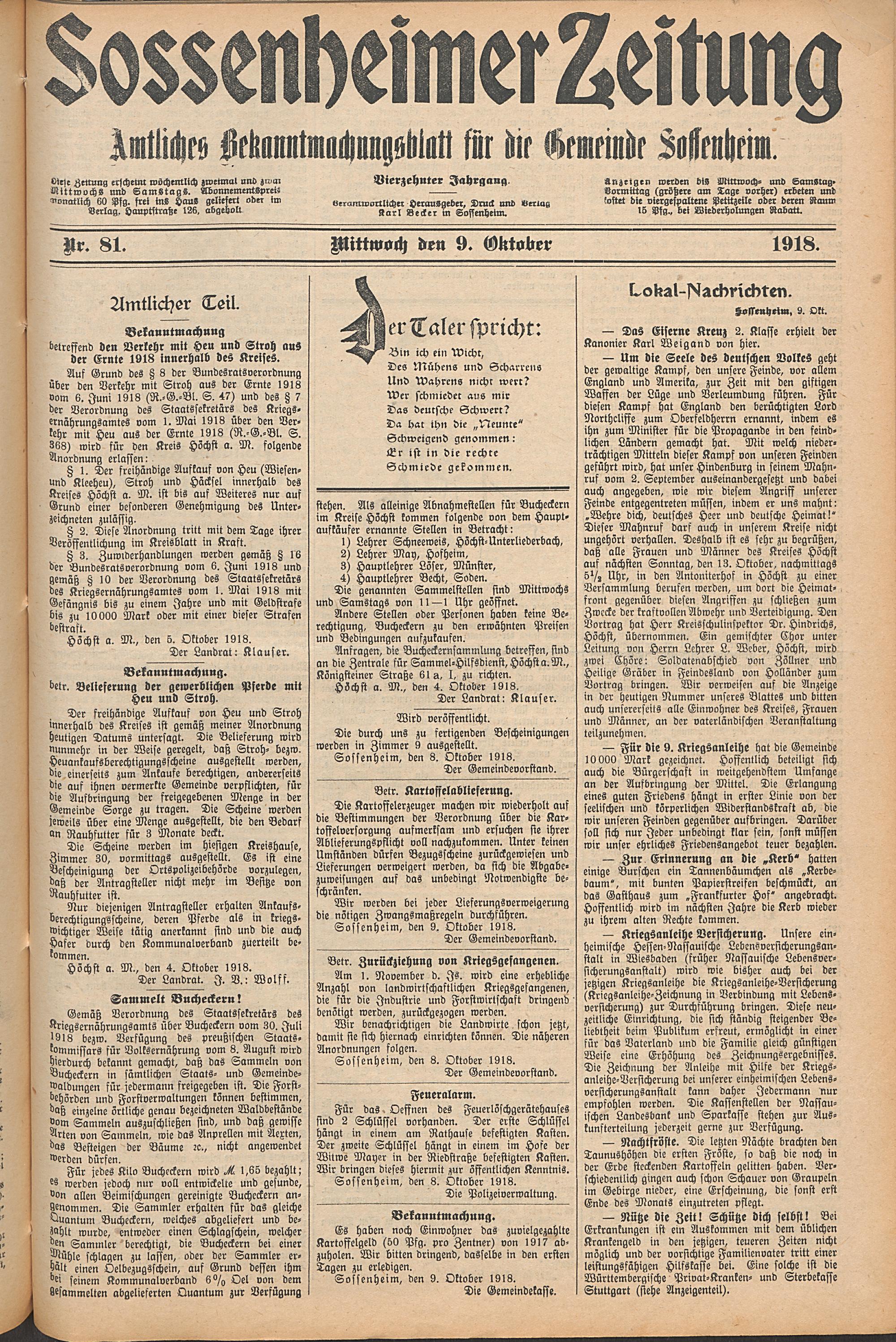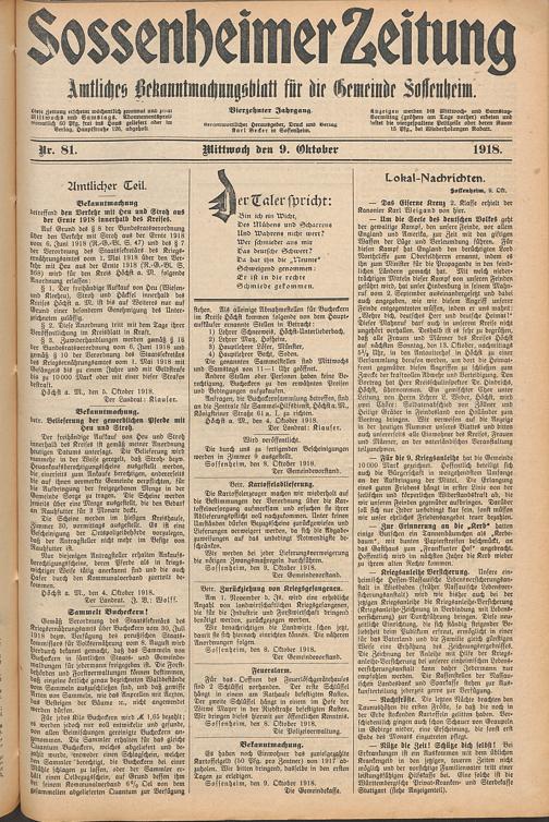 Regionale Zeitungen aus der Zeit des Ersten Weltkrieges