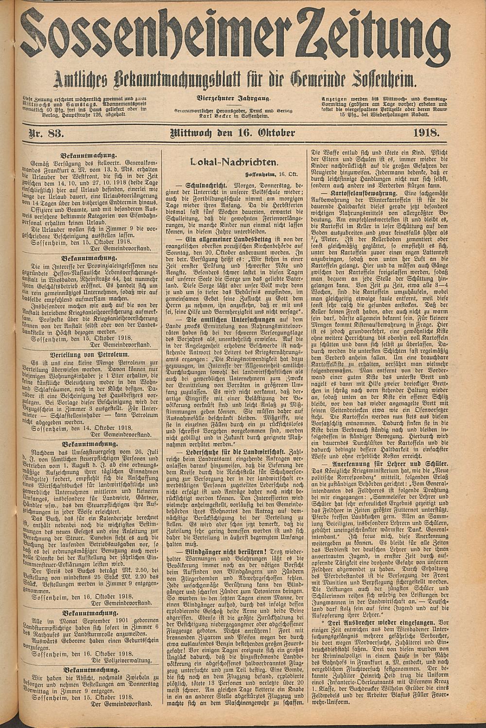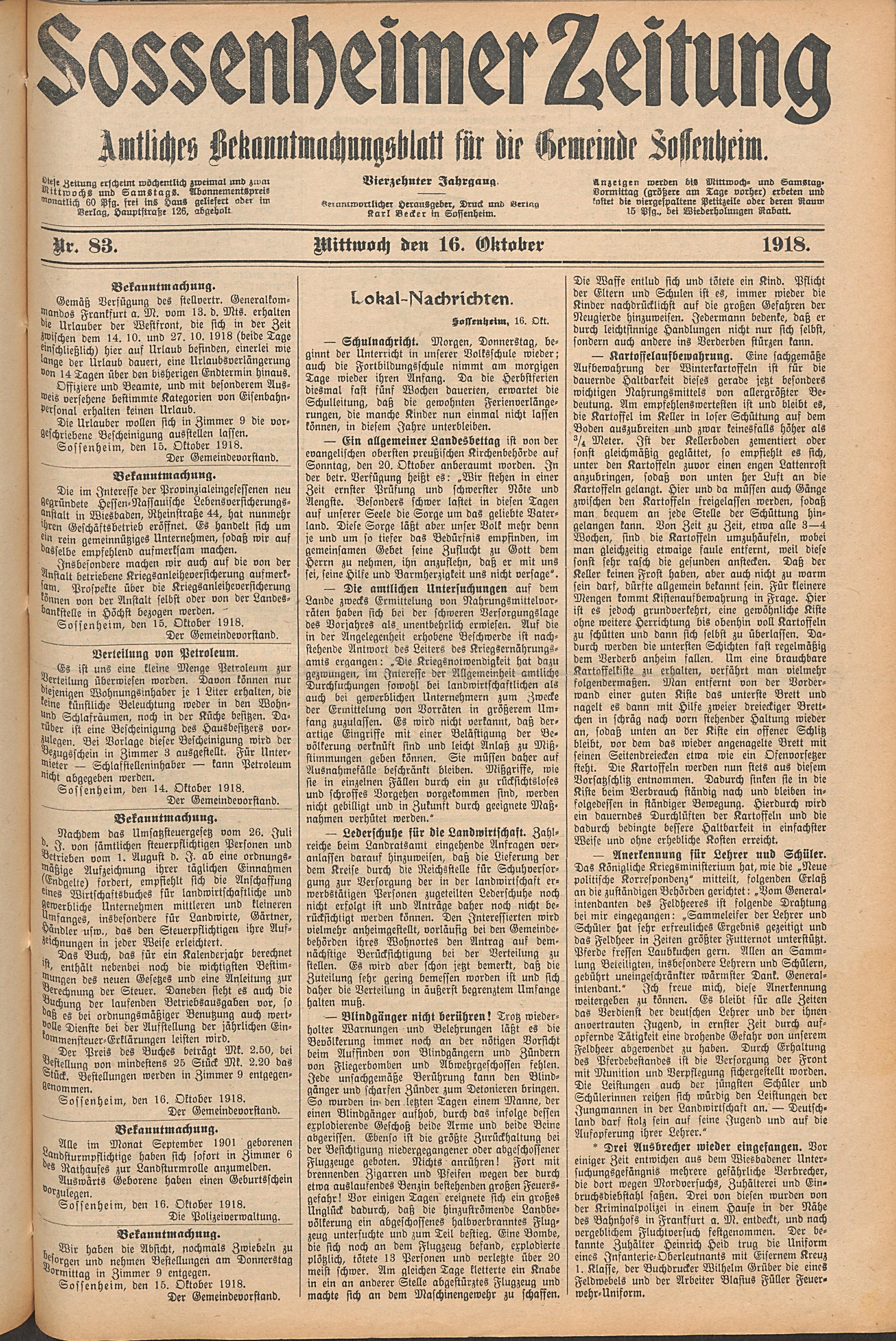 Regionale Zeitungen aus der Zeit des Ersten Weltkrieges