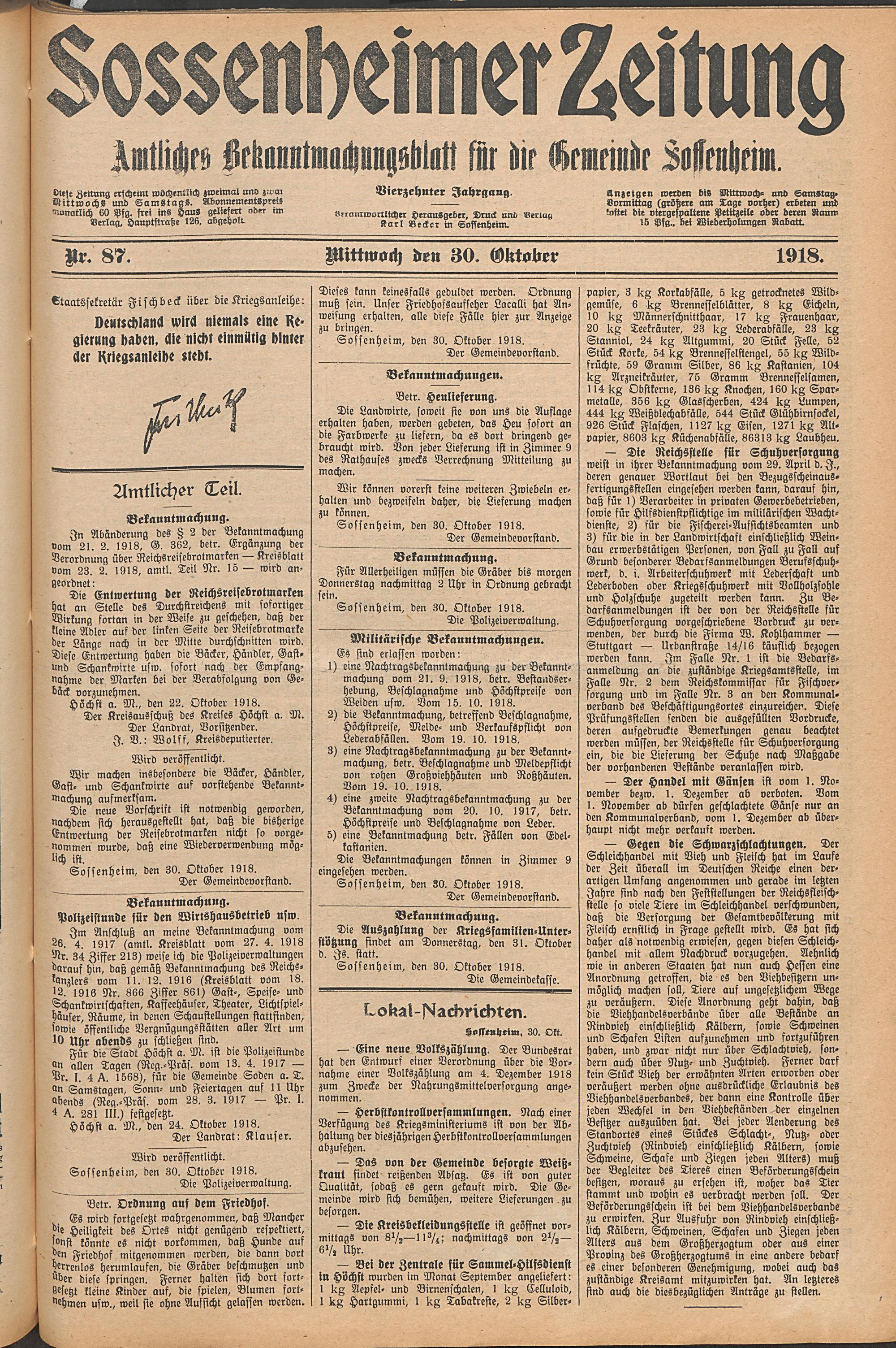 Regionale Zeitungen aus der Zeit des Ersten Weltkrieges