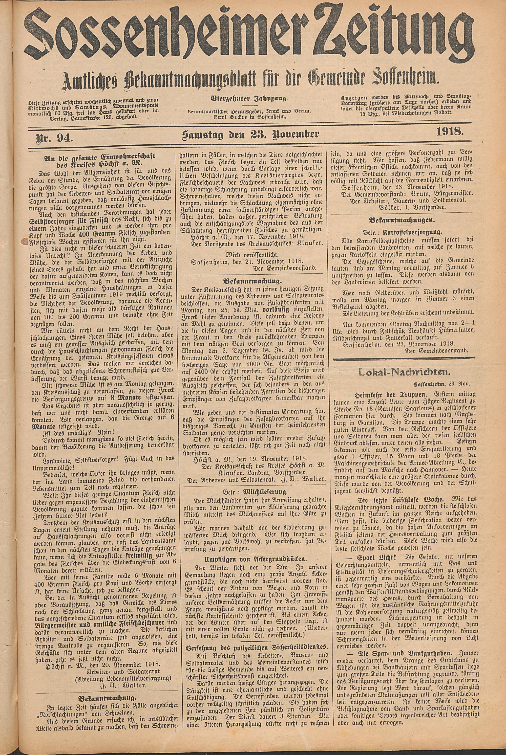 Regionale Zeitungen aus der Zeit des Ersten Weltkrieges
