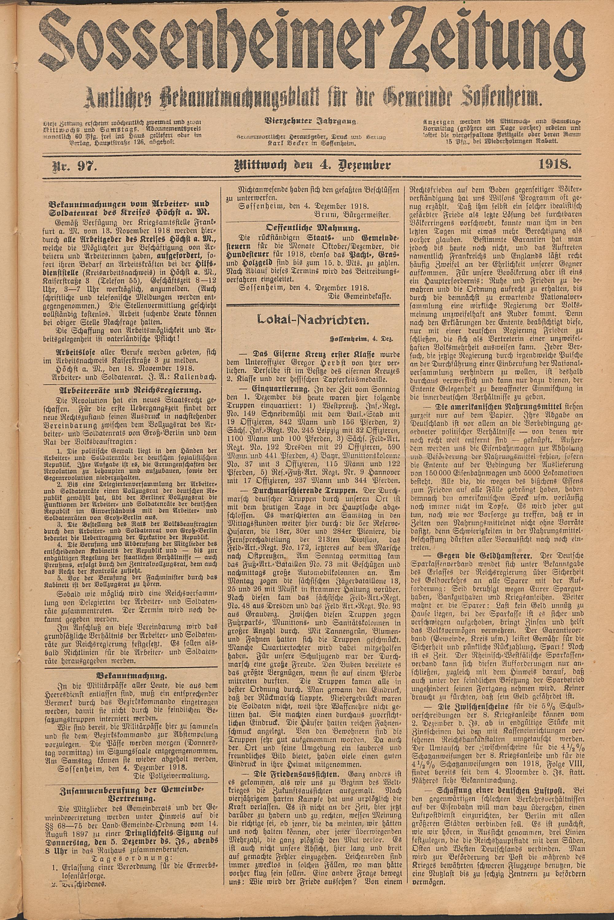 Sossenheimer Zeitung. 1906-1927