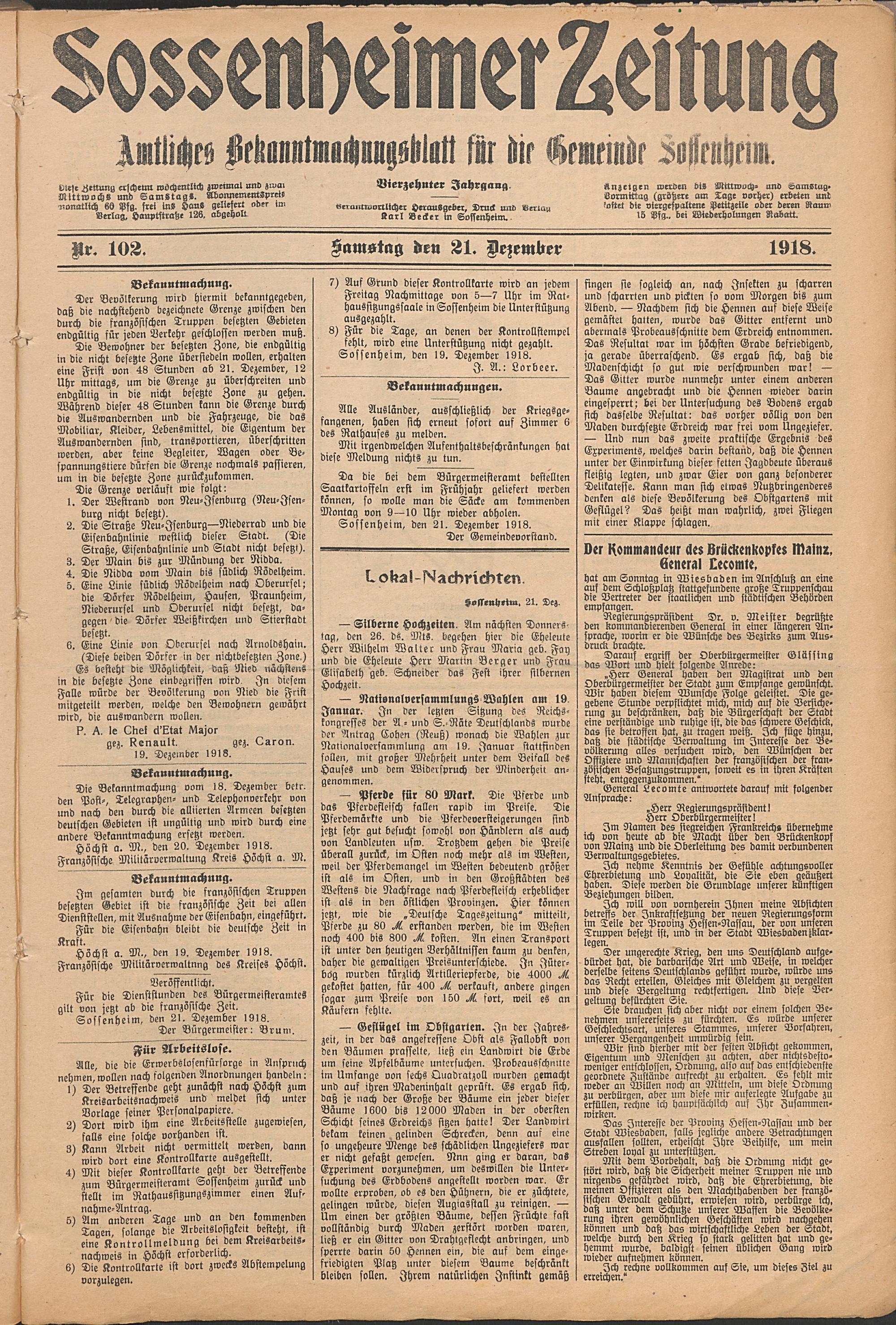 Sossenheimer Zeitung. 1906-1927