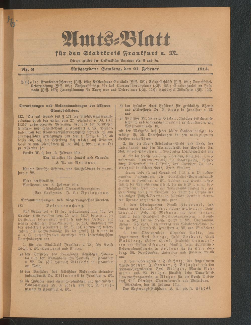 Amtsblatt für den Stadtkreis Frankfurt a.M.....