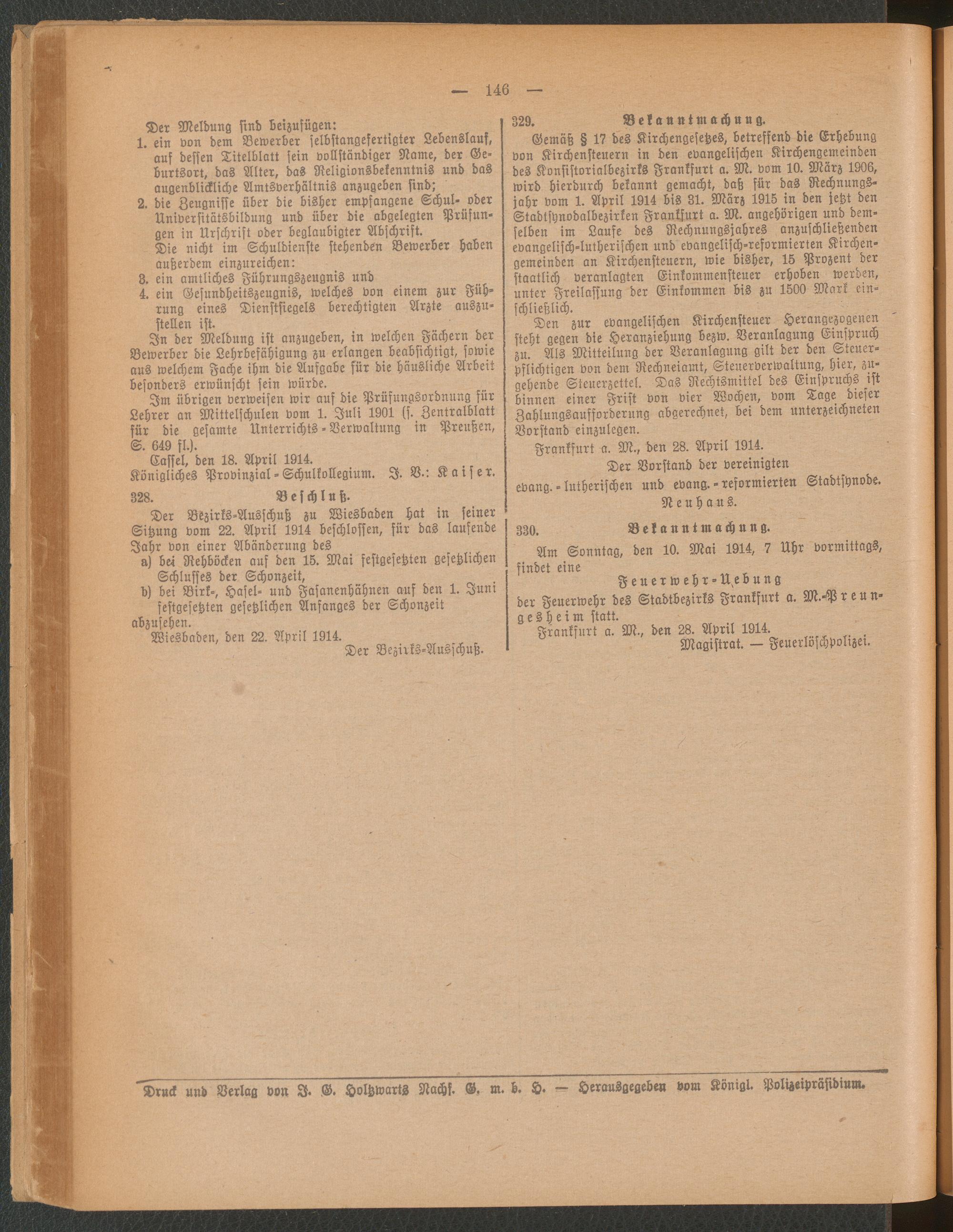 Amtsblatt für den Stadtkreis Frankfurt a.M.. 1828-1918