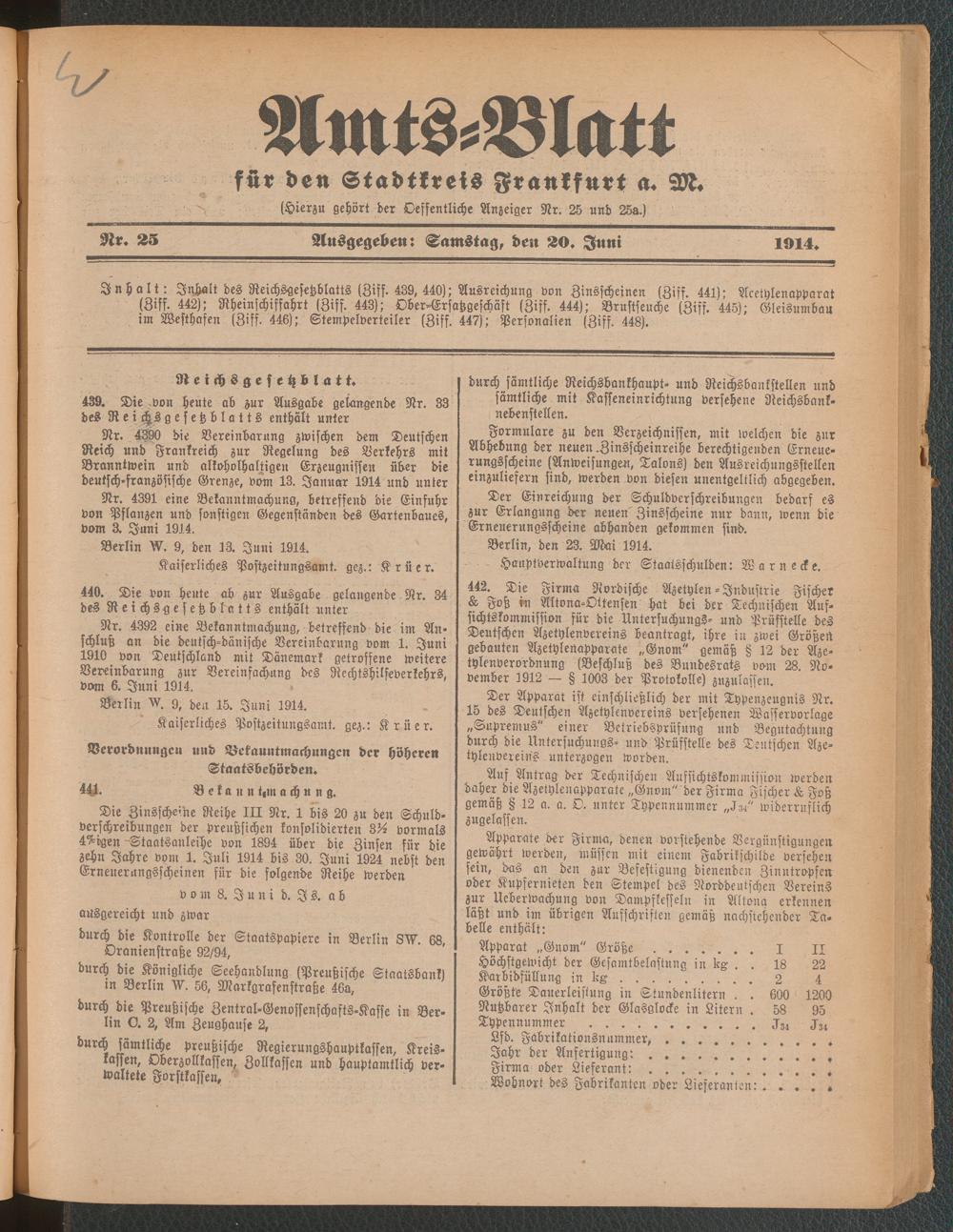 Amtsblatt für den Stadtkreis Frankfurt a.M.....