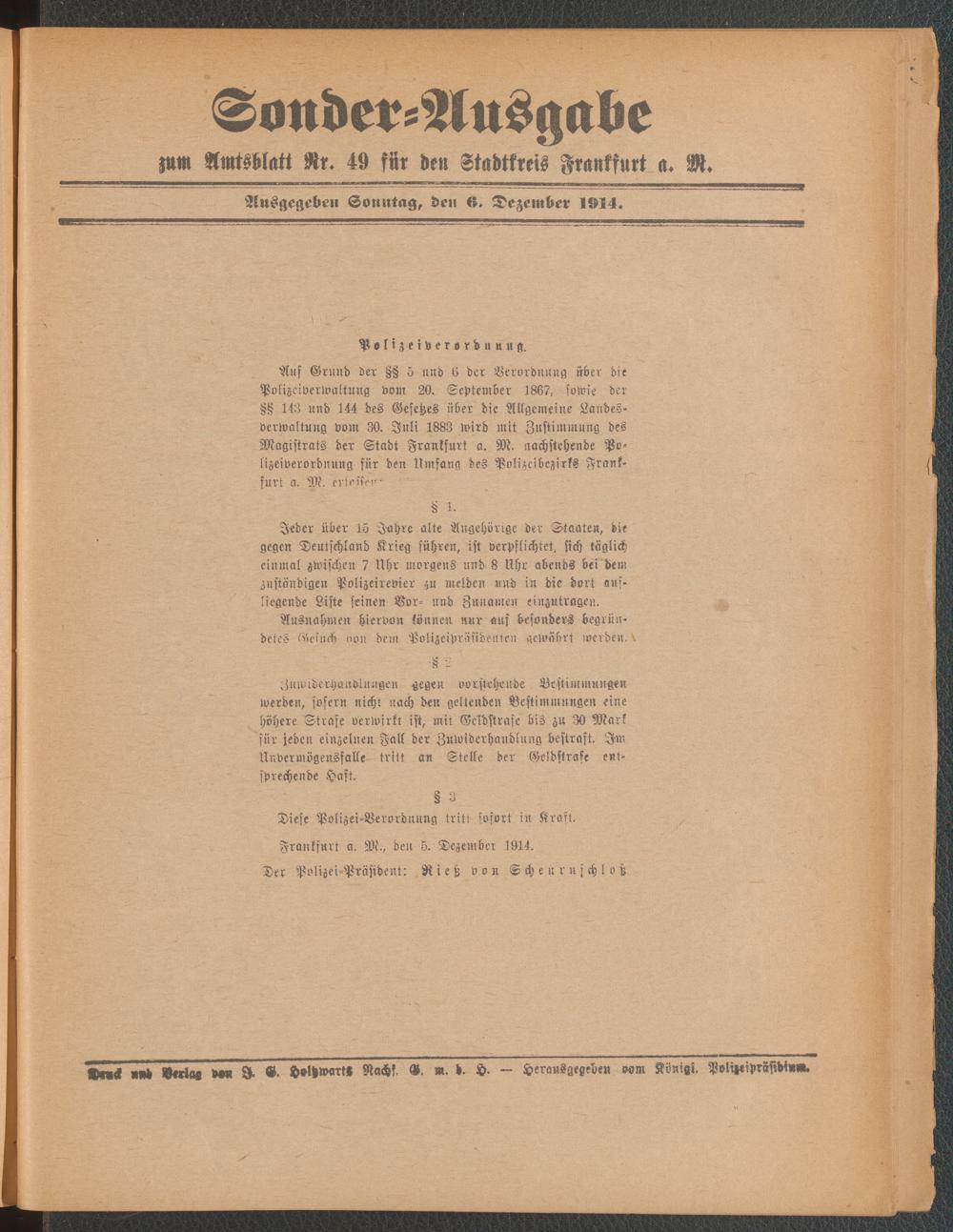 Amtsblatt für den Stadtkreis Frankfurt a.M.. 1828-1918