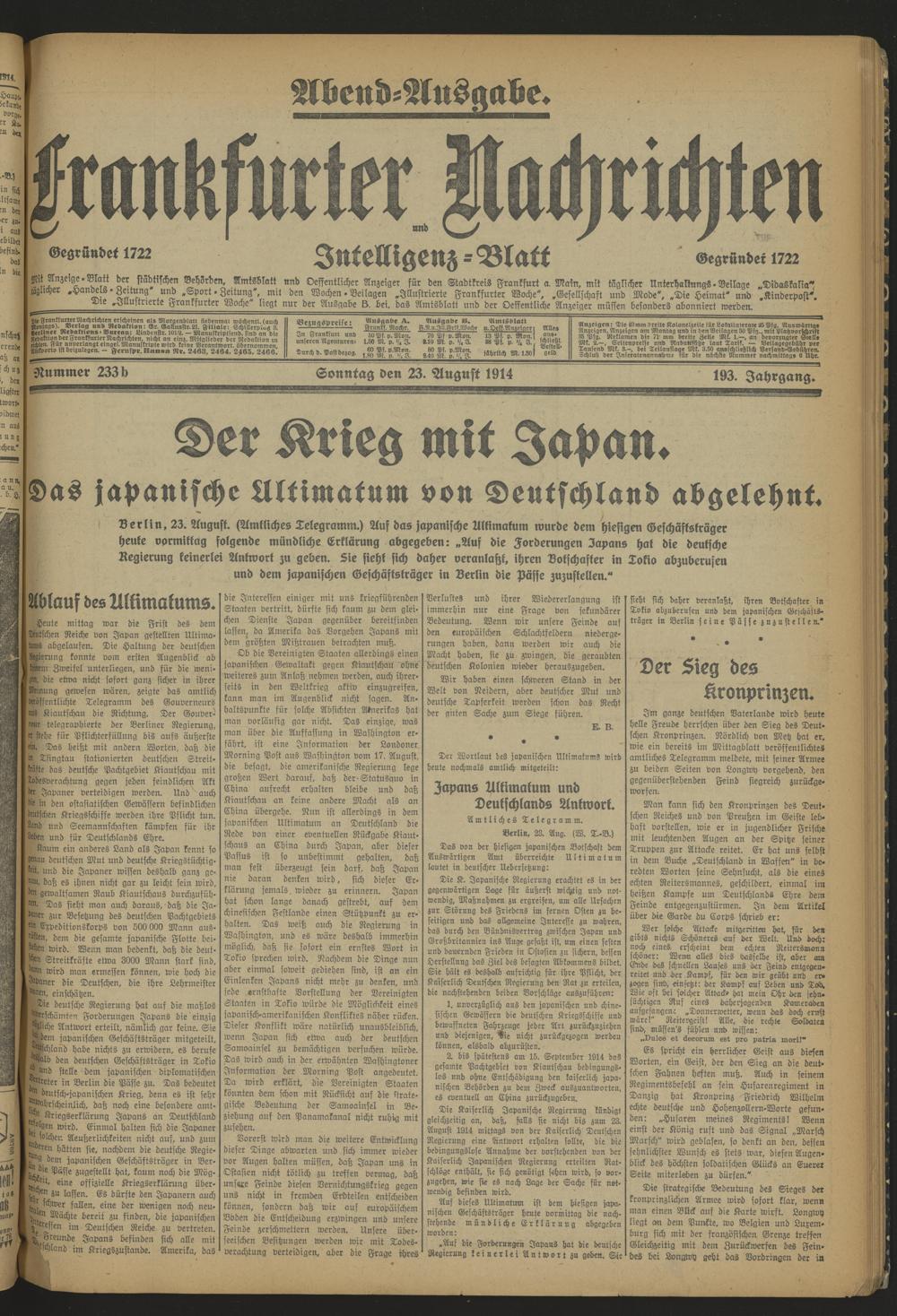 Frankfurter Nachrichten und Intelligenzblatt. 1914-1918