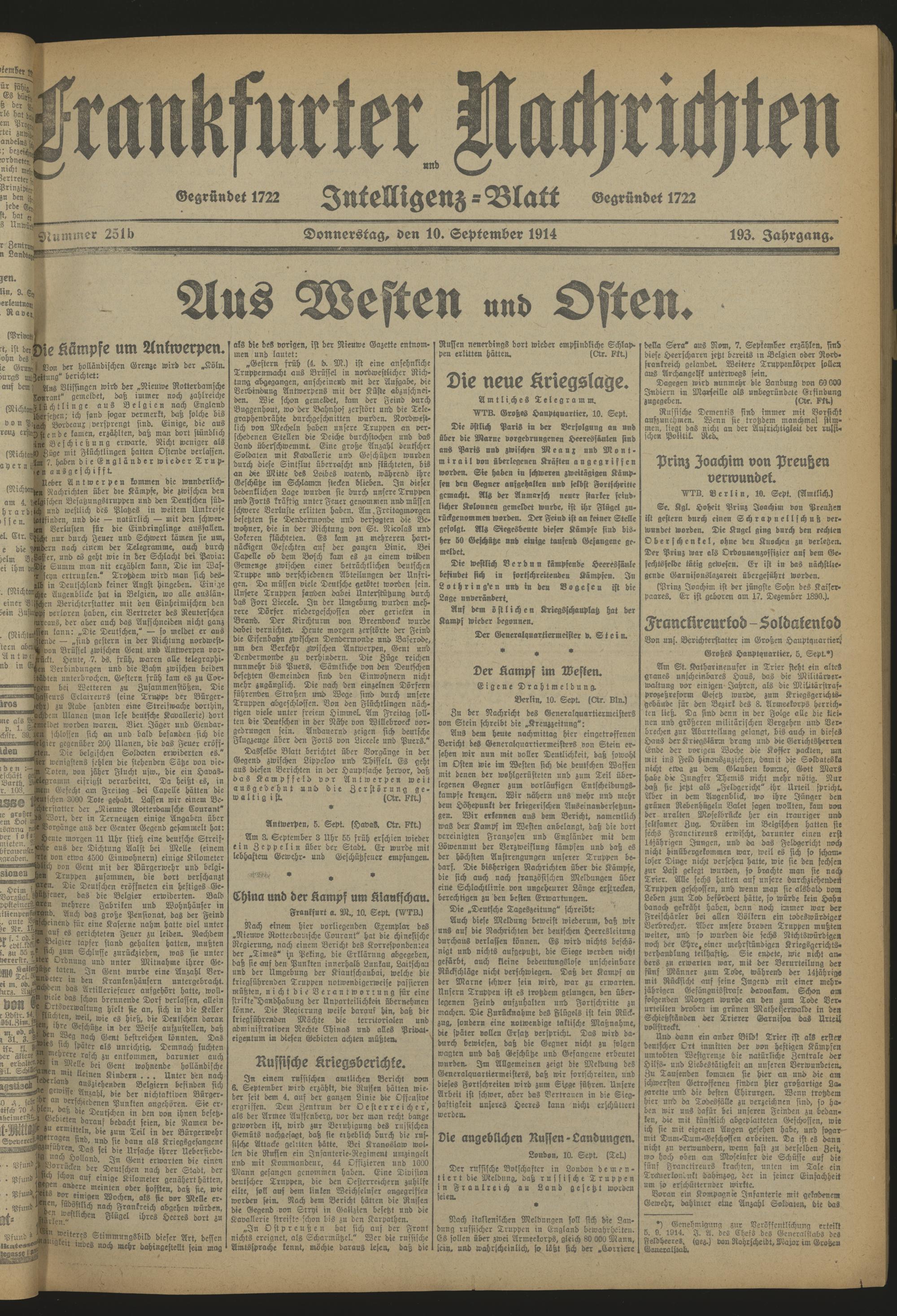 Frankfurter Nachrichten und Intelligenzblatt. 1914-1918