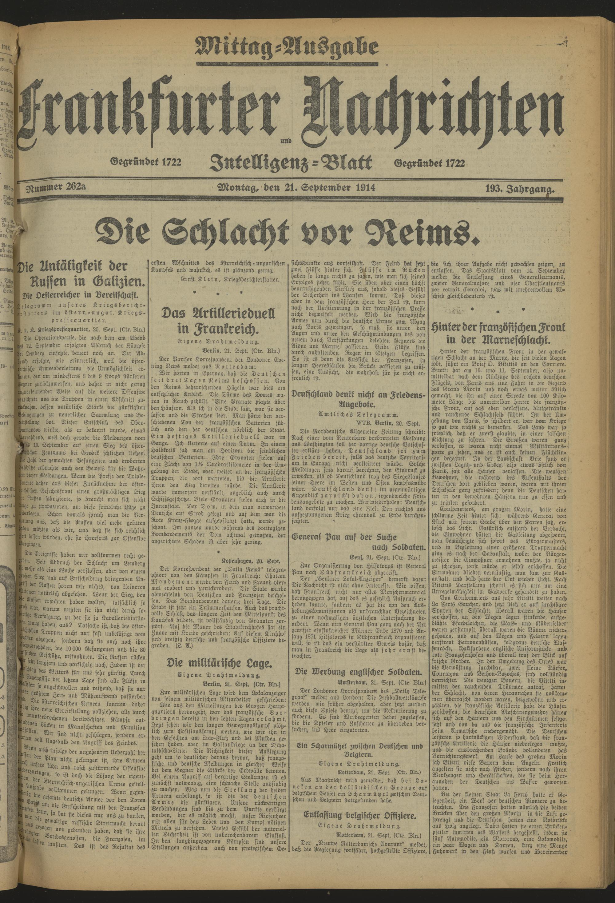 Frankfurter Nachrichten und Intelligenzblatt. 1914-1918