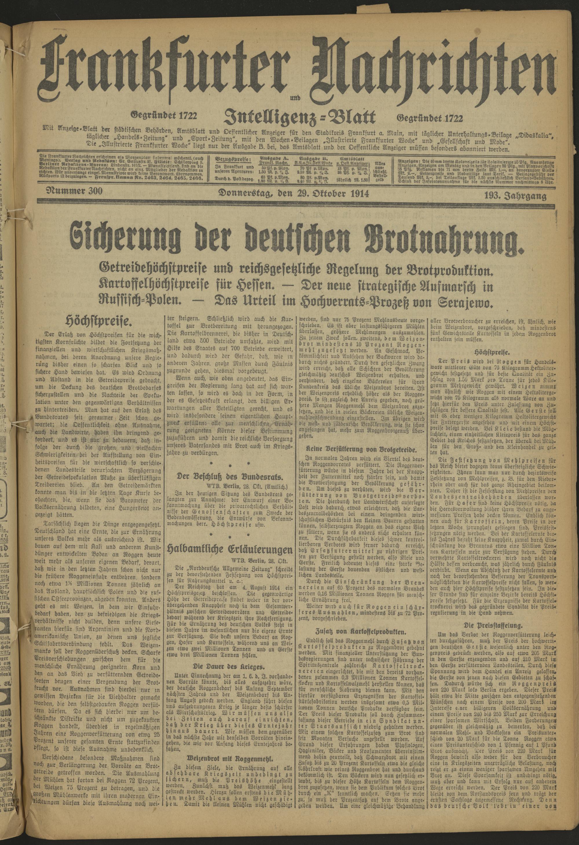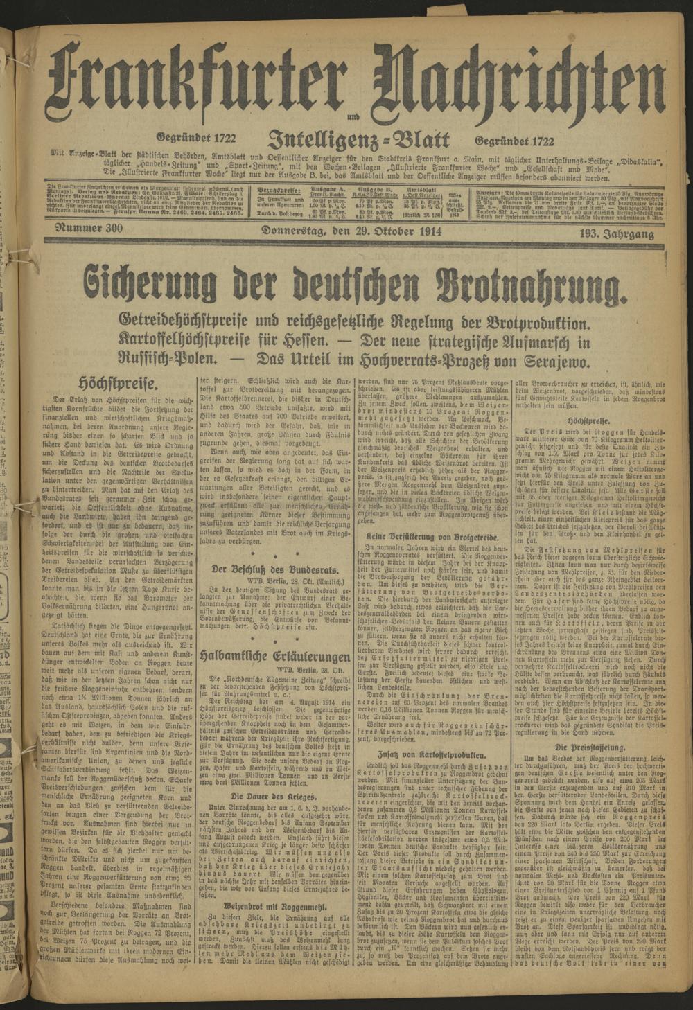 Frankfurter Nachrichten und Intelligenzblatt. 1914-1918