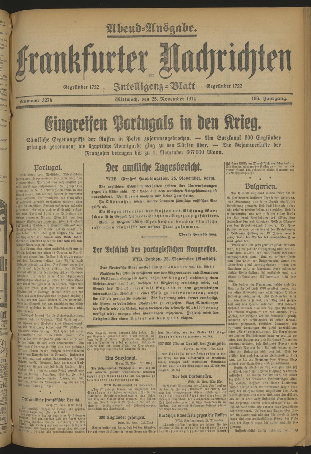 Frankfurter Nachrichten und Intelligenzblatt. 1914-1918