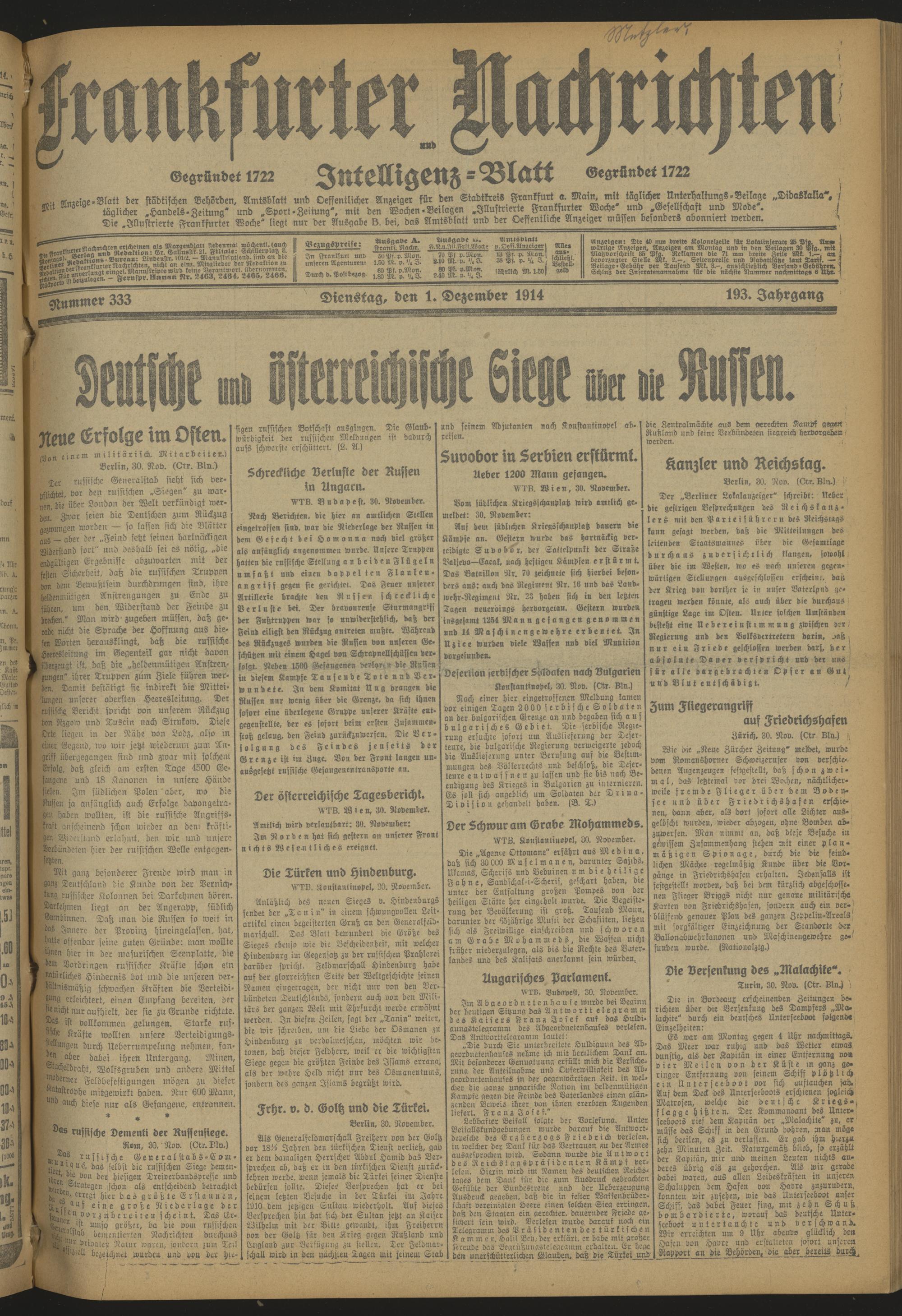 Frankfurter Nachrichten und Intelligenzblatt. 1914-1918