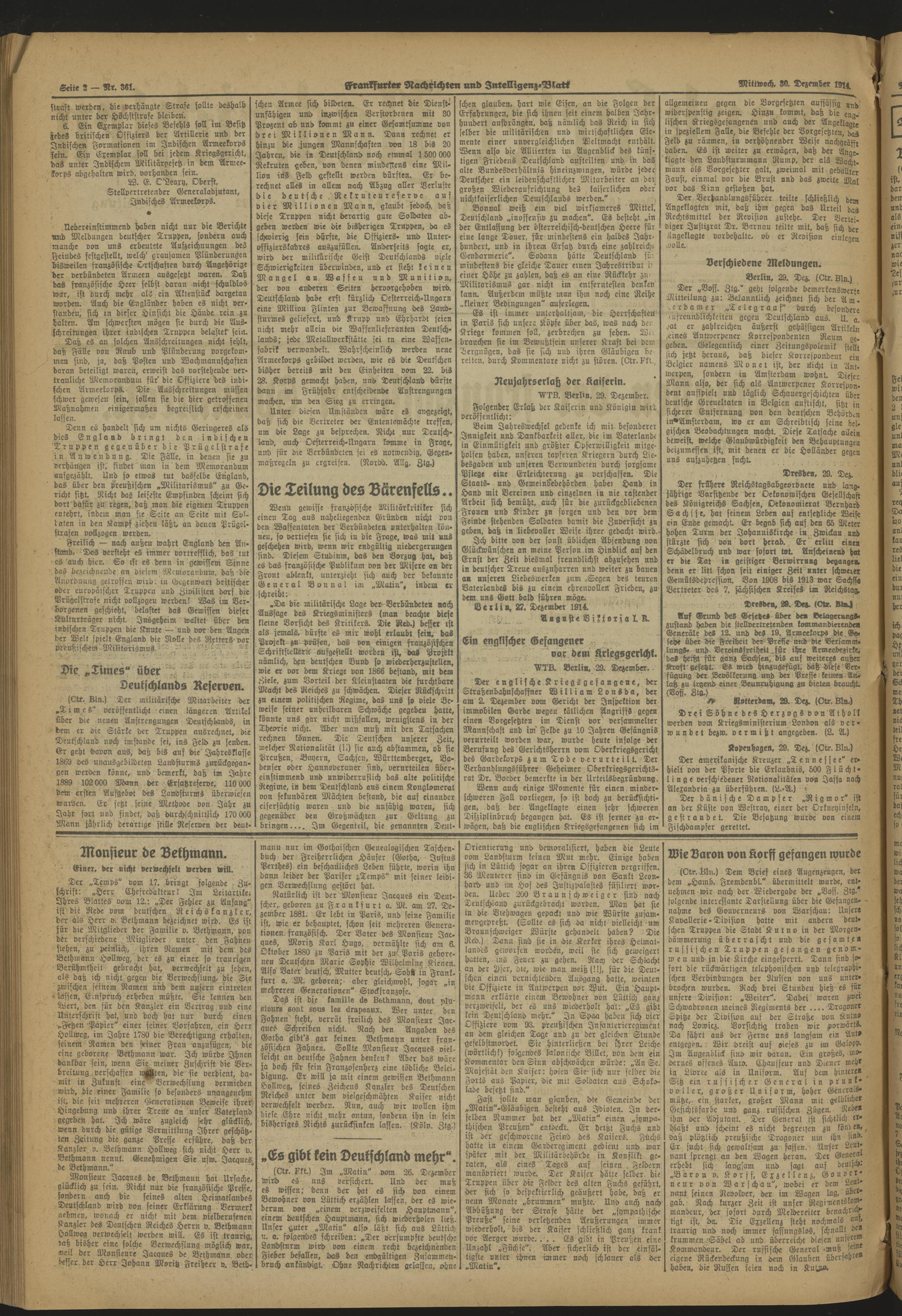 Frankfurter Nachrichten und Intelligenzblatt. 1914-1918