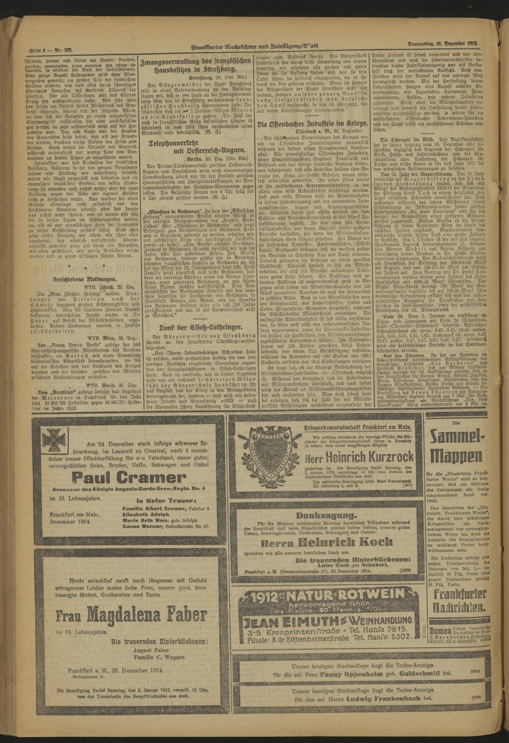 Frankfurter Nachrichten und Intelligenzblatt. 1914-1918