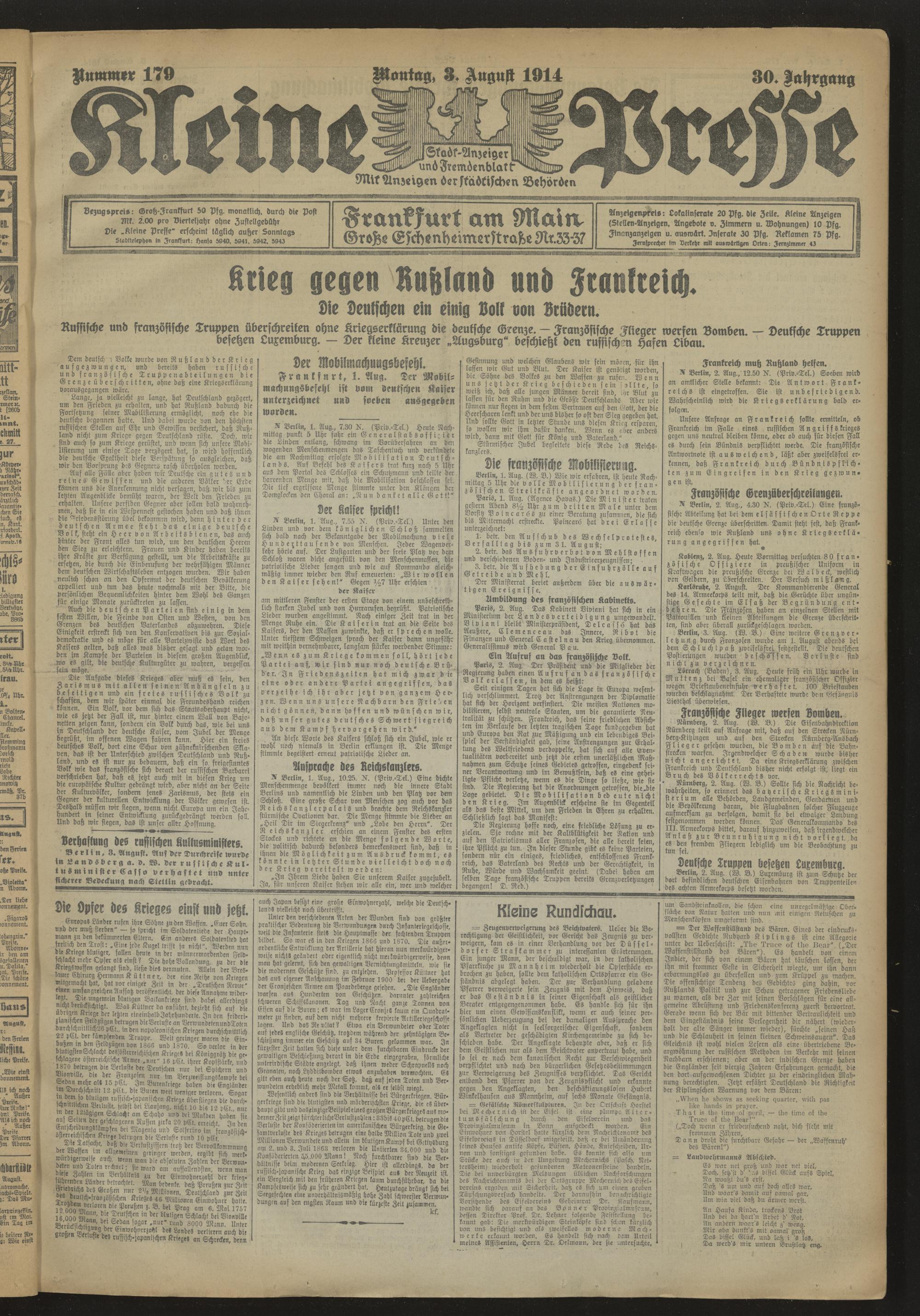 Der Erste Weltkrieg im Spiegel hessischer Regionalzeitungen