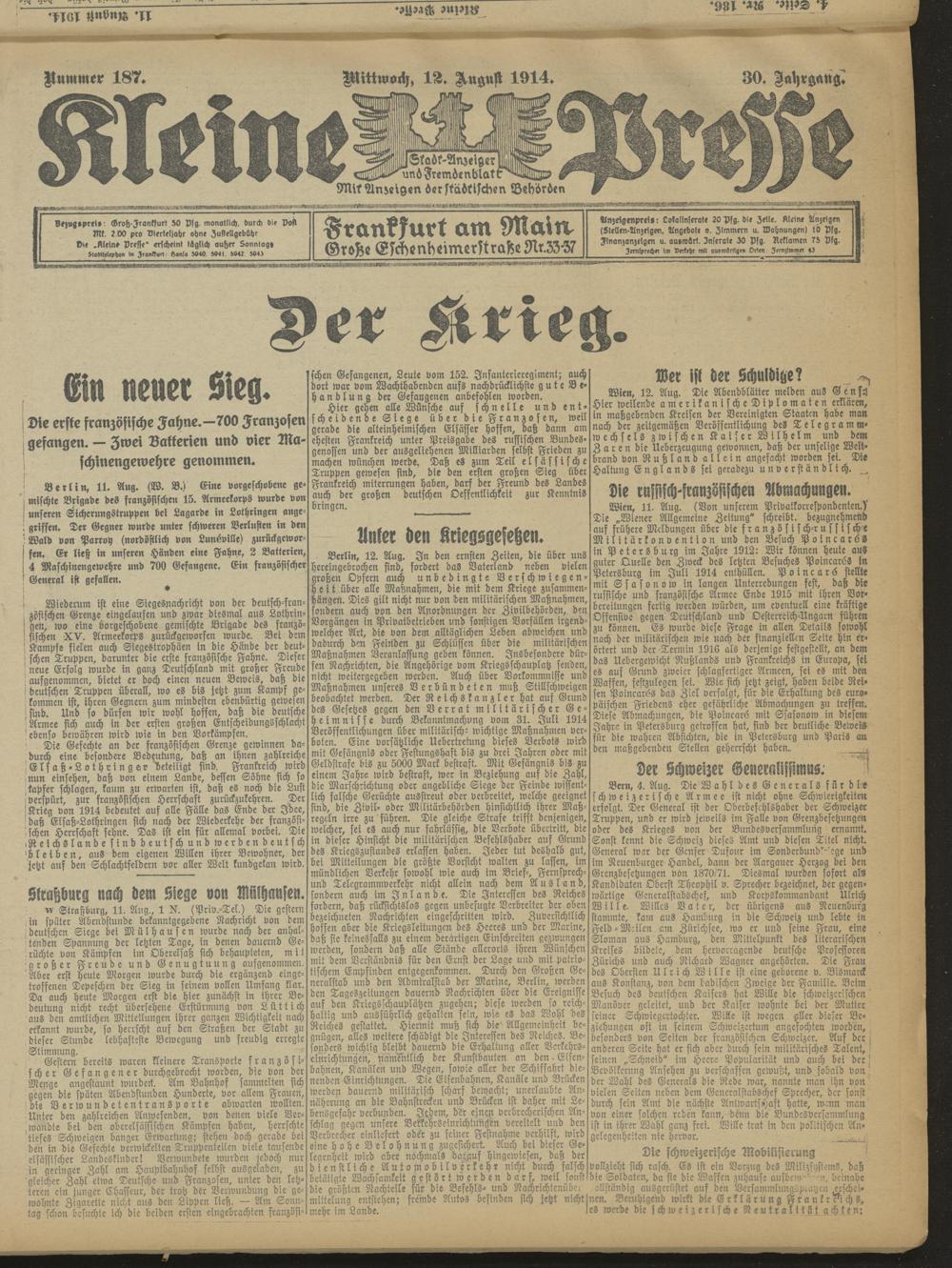 Der Erste Weltkrieg im Spiegel hessischer Regionalzeitungen