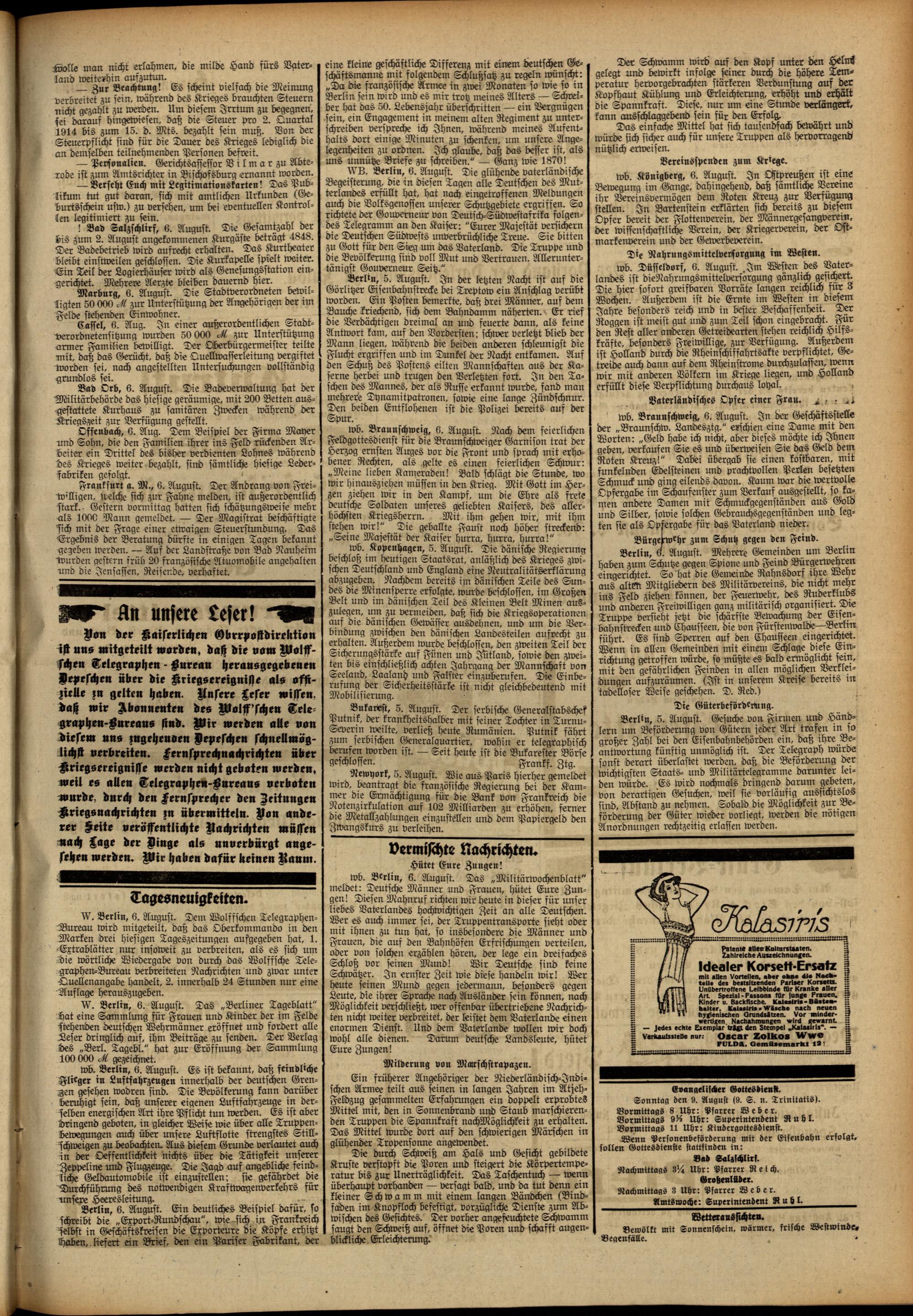 Regionale Zeitungen aus der Zeit des Ersten Weltkrieges