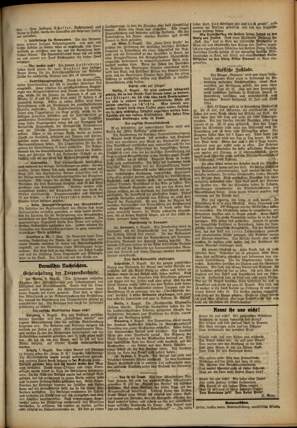 Regionale Zeitungen aus der Zeit des Ersten Weltkrieges