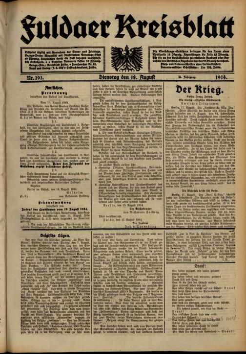 Der Erste Weltkrieg im Spiegel hessischer Regionalzeitungen