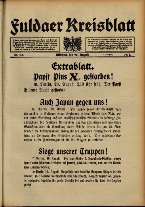 Regionale Zeitungen aus der Zeit des Ersten Weltkrieges