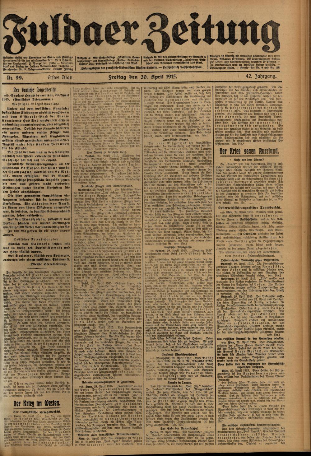 Regionale Zeitungen aus der Zeit des Ersten Weltkrieges