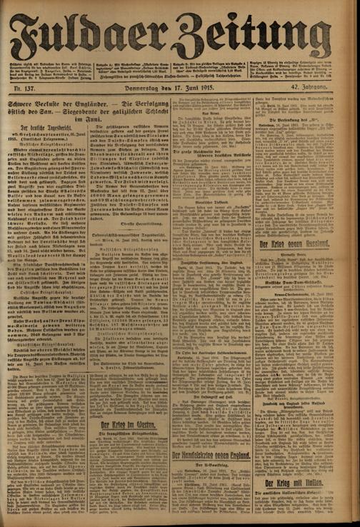 Regionale Zeitungen aus der Zeit des Ersten Weltkrieges