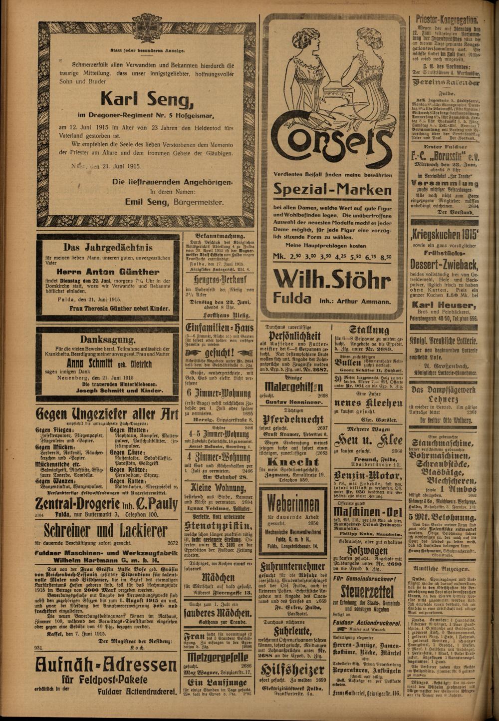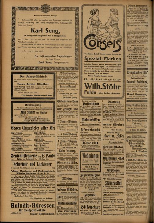 Regionale Zeitungen aus der Zeit des Ersten Weltkrieges