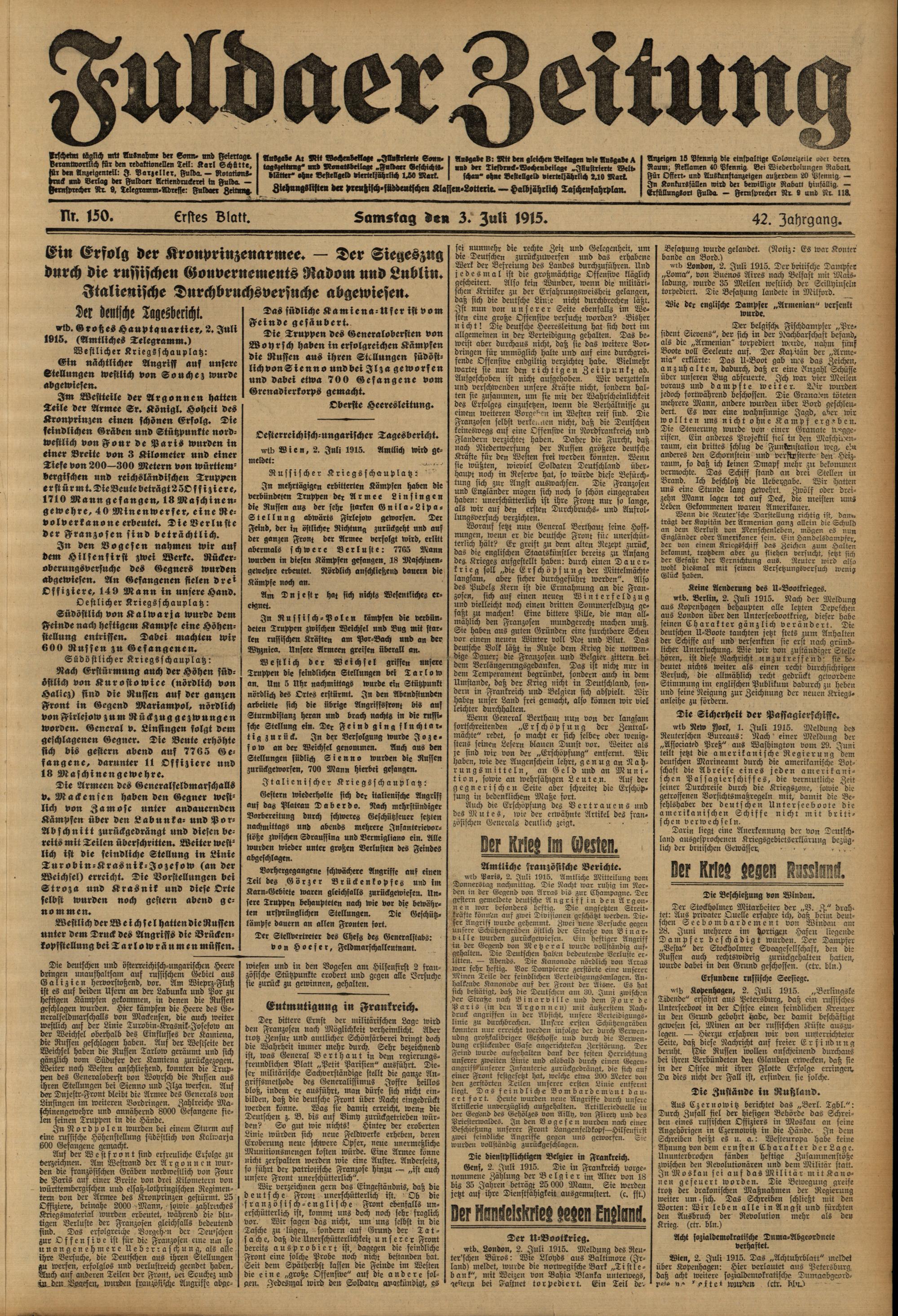 Regionale Zeitungen aus der Zeit des Ersten Weltkrieges