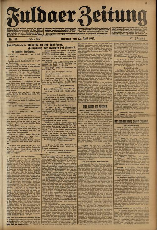 Regionale Zeitungen aus der Zeit des Ersten Weltkrieges