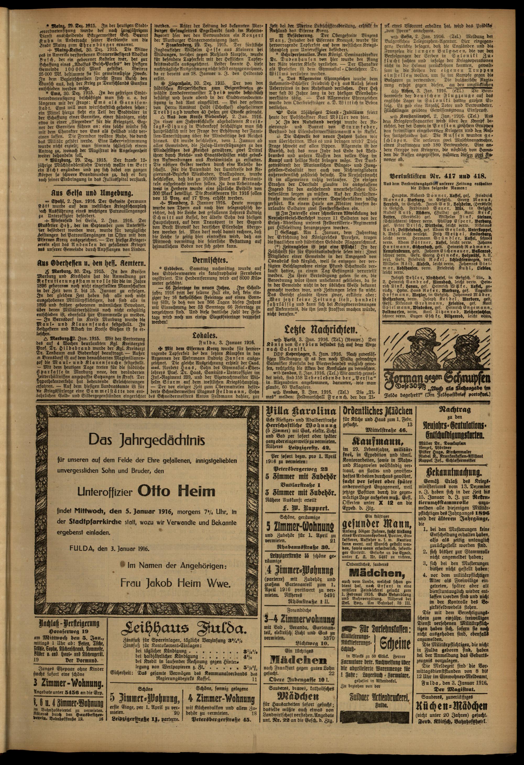 Regionale Zeitungen aus der Zeit des Ersten Weltkrieges