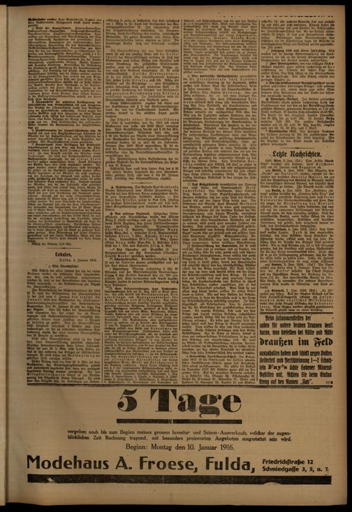 Regionale Zeitungen aus der Zeit des Ersten Weltkrieges