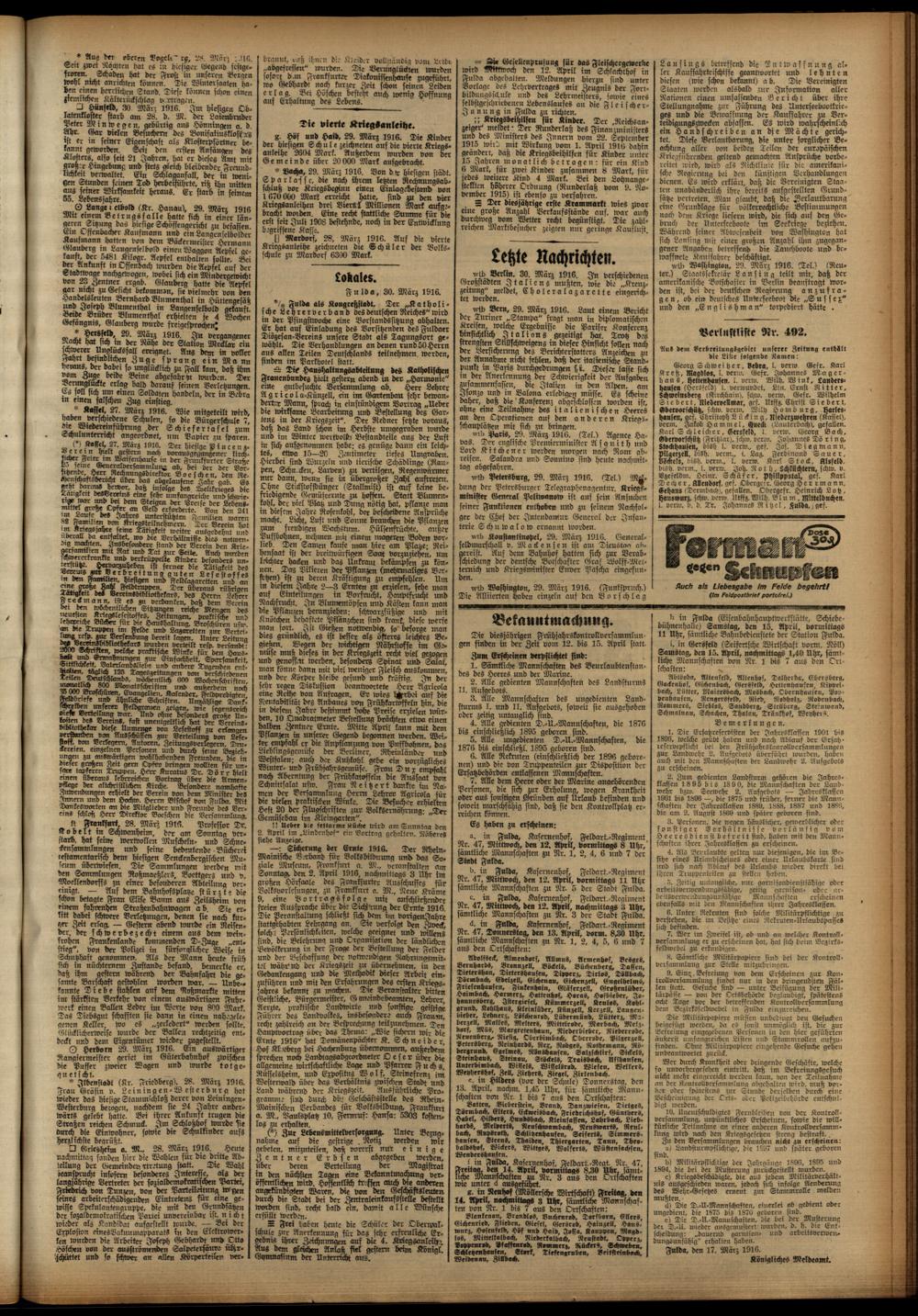 Regionale Zeitungen aus der Zeit des Ersten Weltkrieges