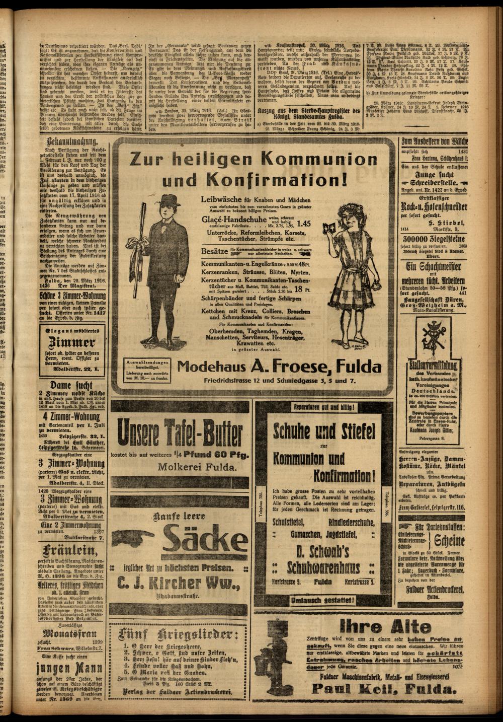 Regionale Zeitungen aus der Zeit des Ersten Weltkrieges