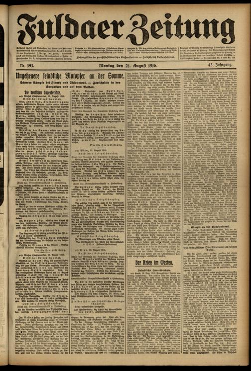 Regionale Zeitungen aus der Zeit des Ersten Weltkrieges