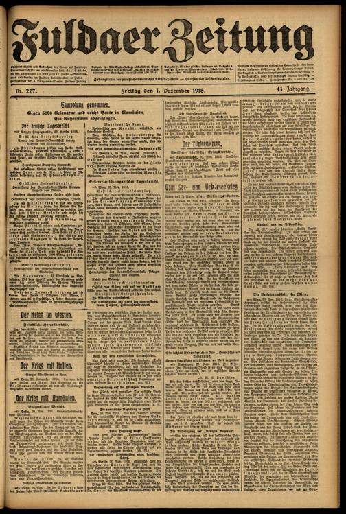 Regionale Zeitungen aus der Zeit des Ersten Weltkrieges