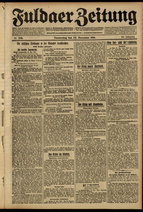 Regionale Zeitungen aus der Zeit des Ersten Weltkrieges