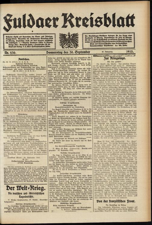 Regionale Zeitungen aus der Zeit des Ersten Weltkrieges