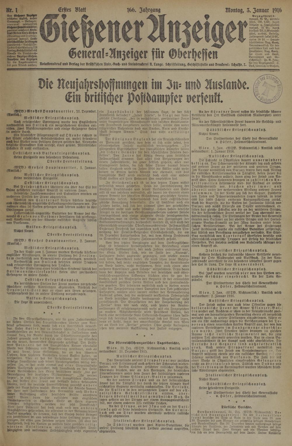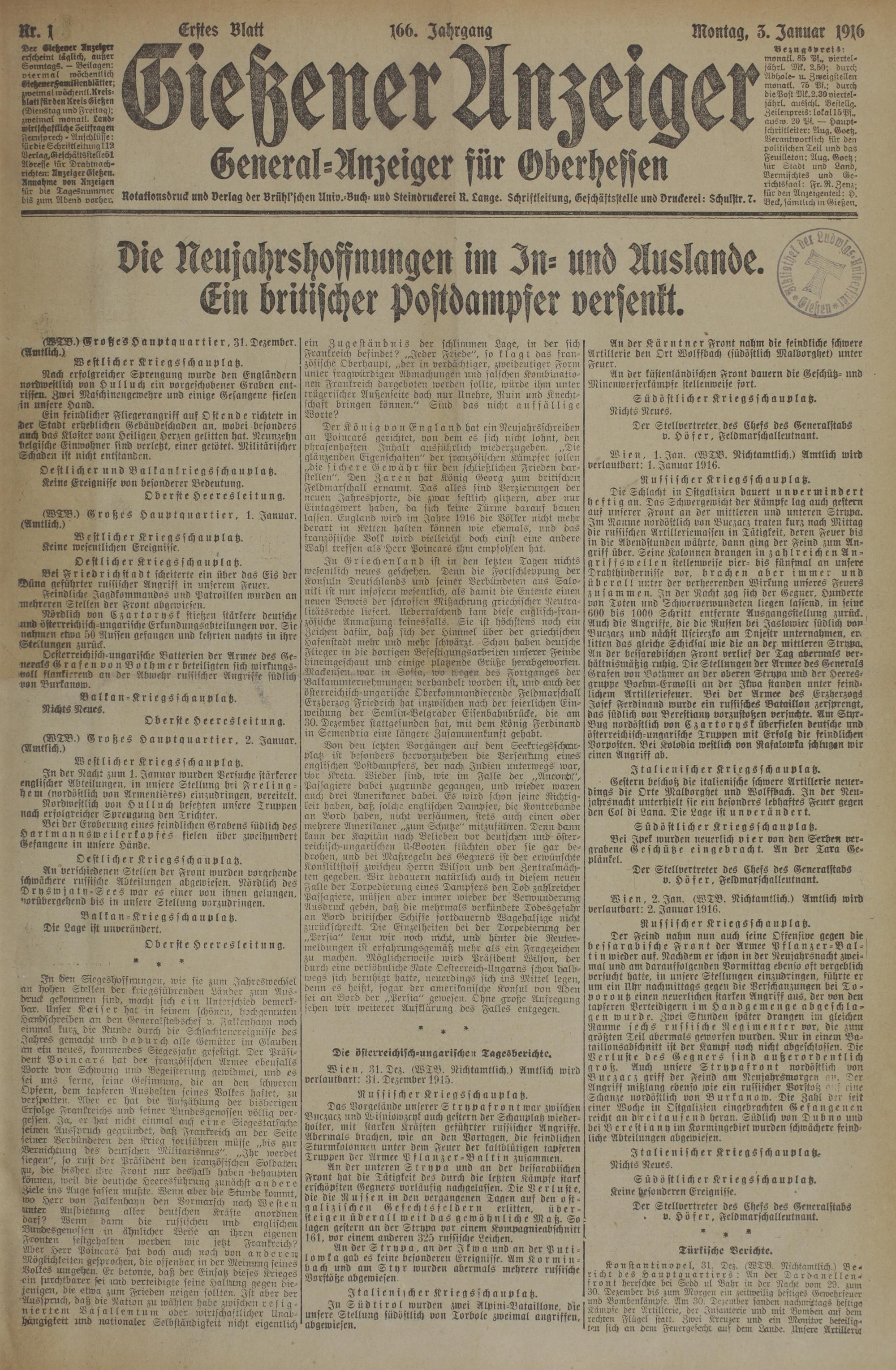 (3.1.1916) Erstes Blatt