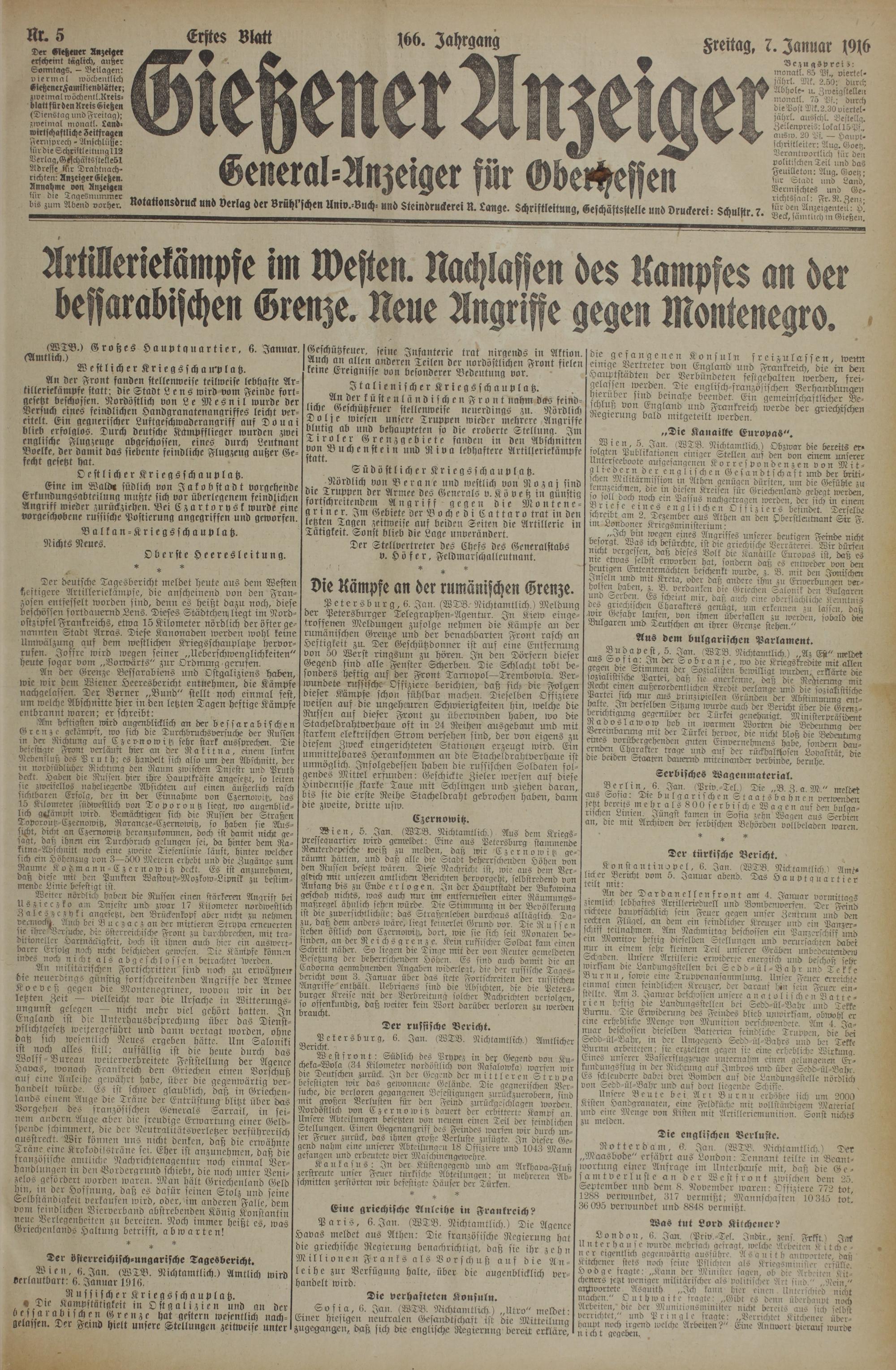 (7.1.1916) Erstes Blatt