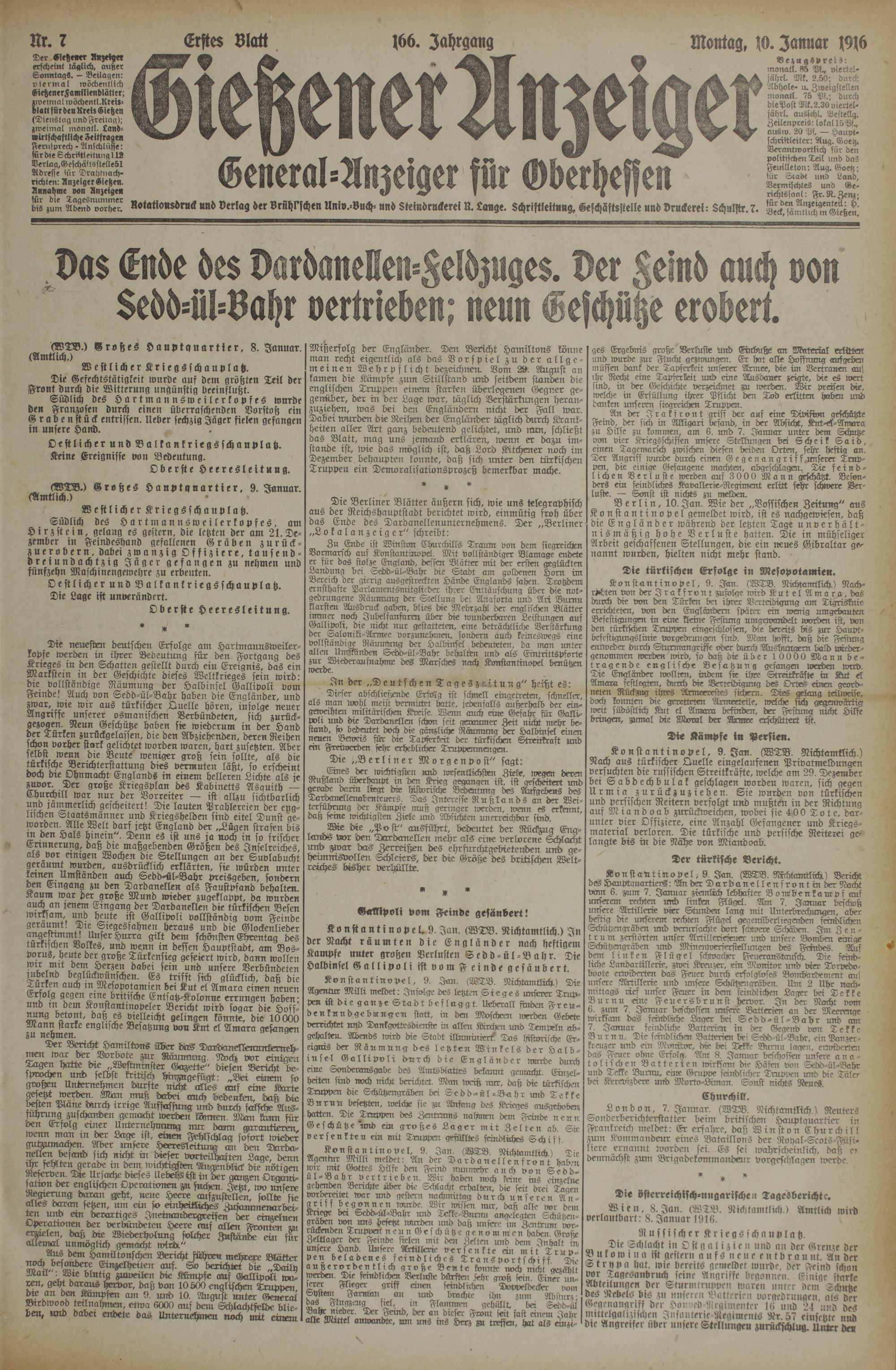 (10.1.1916) Erstes Blatt