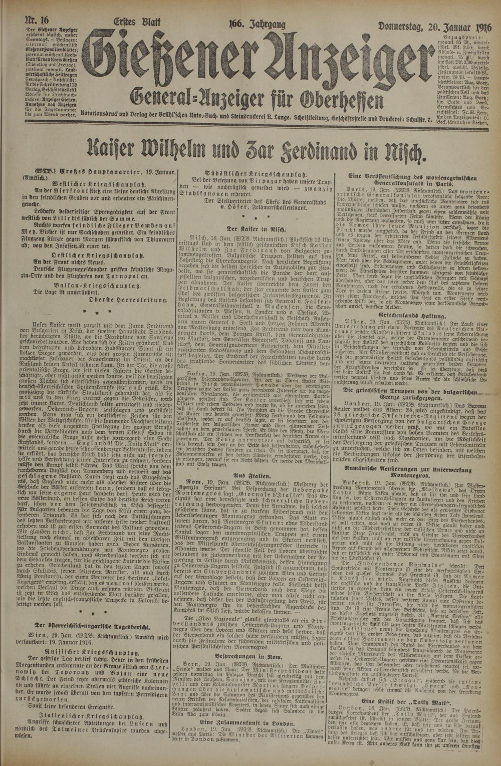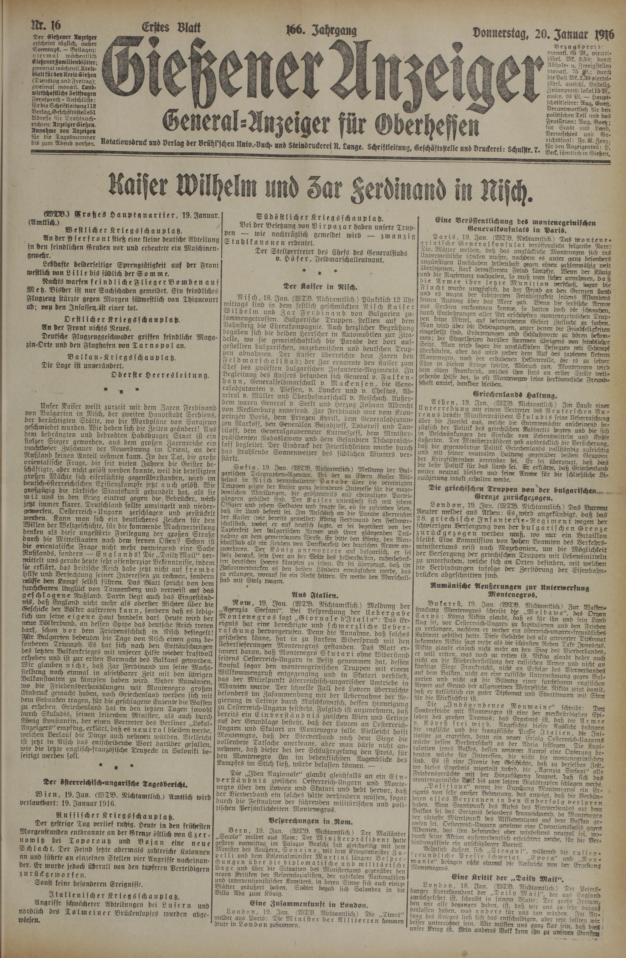 (20.1.1916) Erstes Blatt