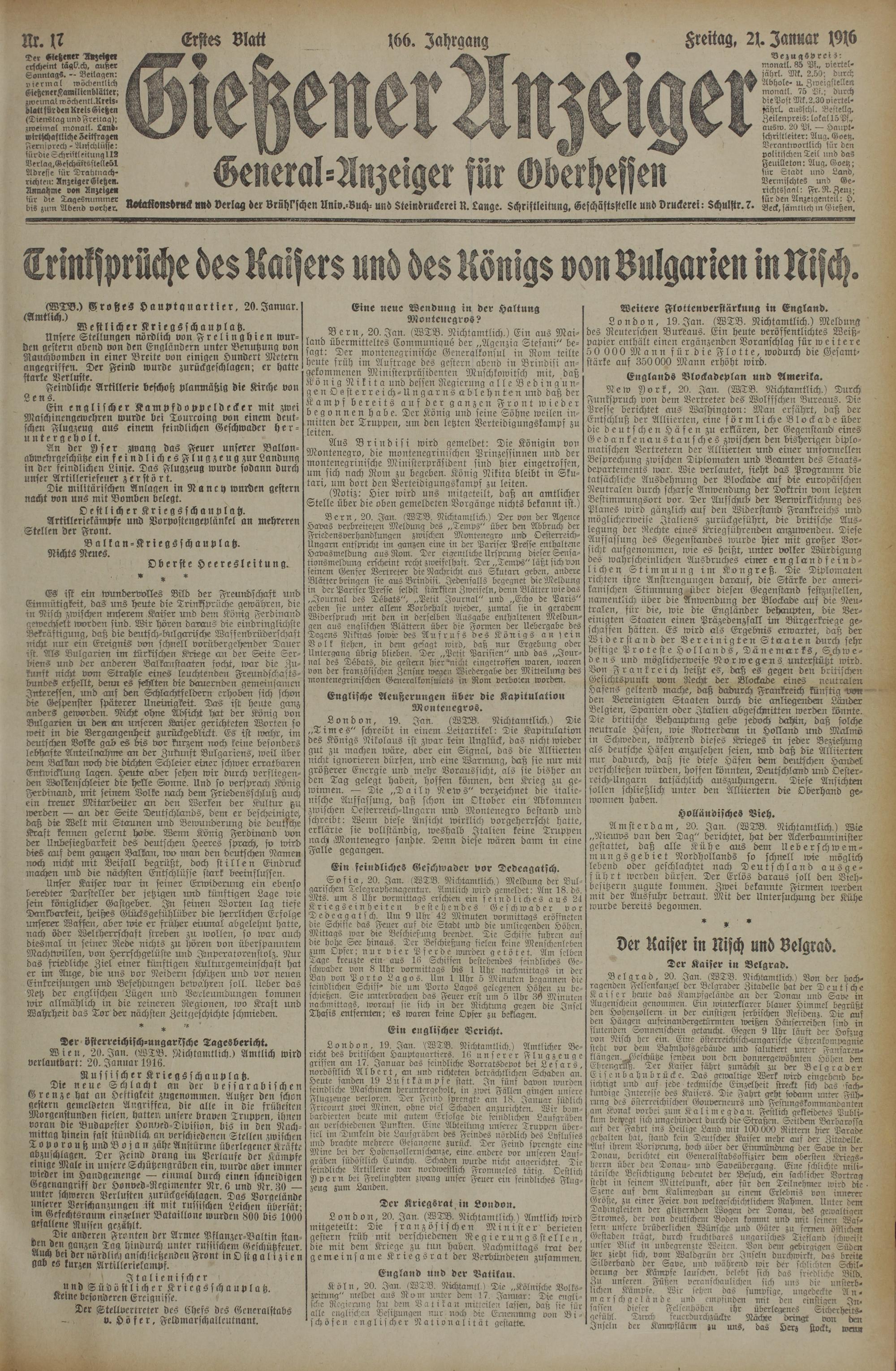 (21.1.1916) Erstes Blatt